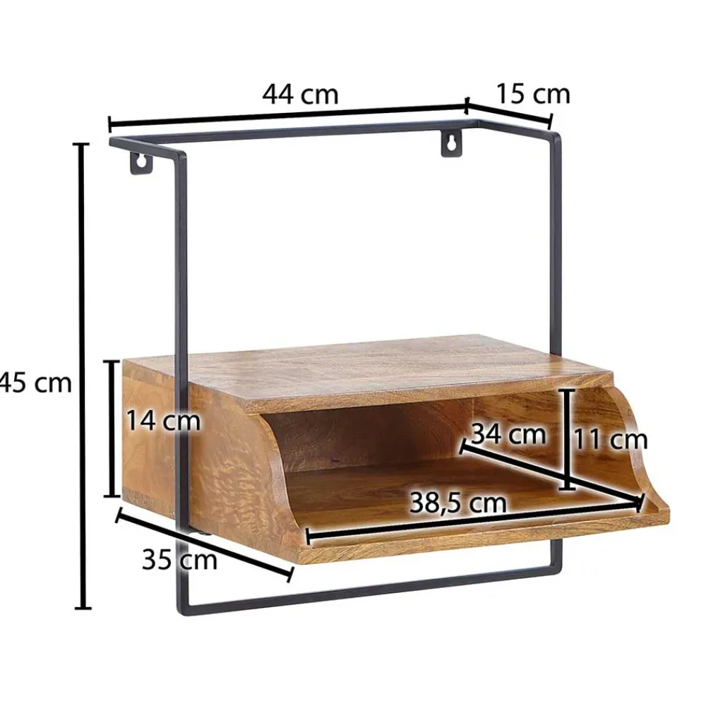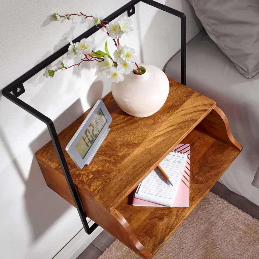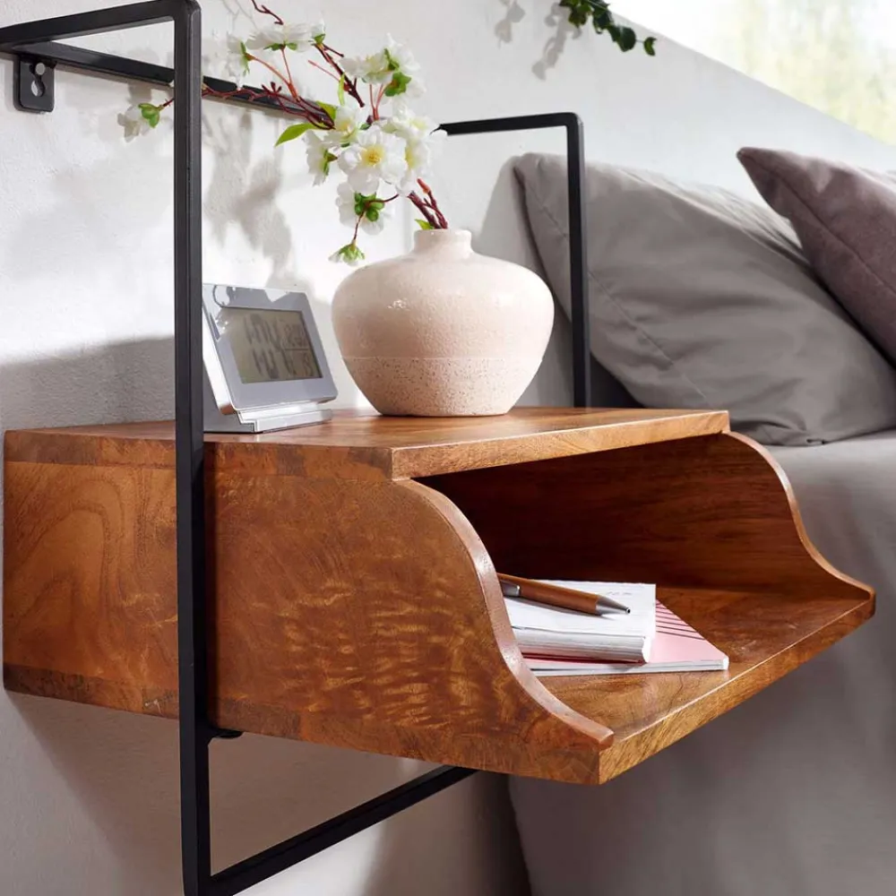 - Ansprechende Wand-Nachtkonsole in Mangoholz Naturfarben und Schwarz