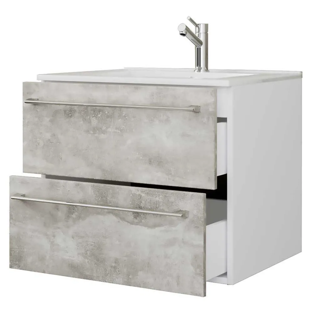 - Trendstarke Badmöbel in Beton Grau und Weiß