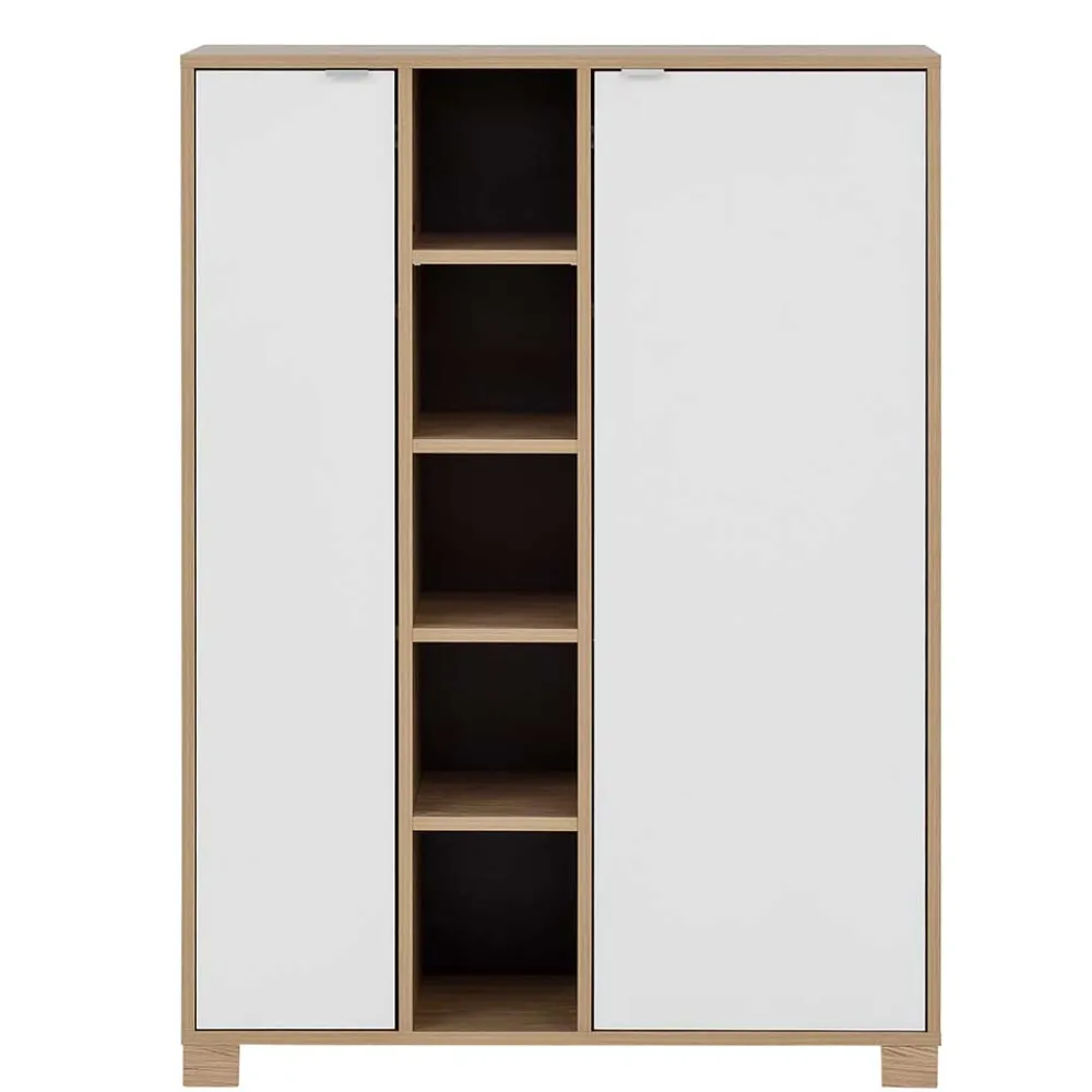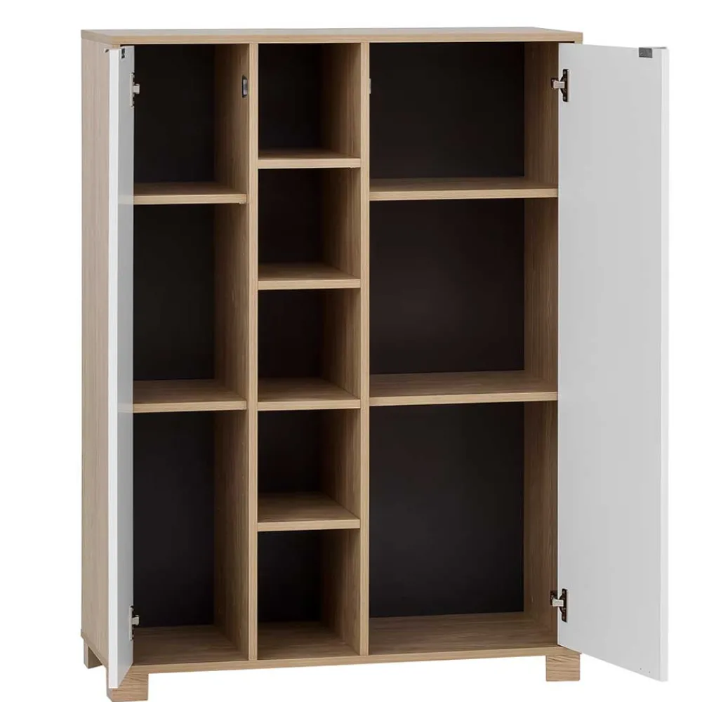 - Apartes Highboard in Weiß und Eiche hell