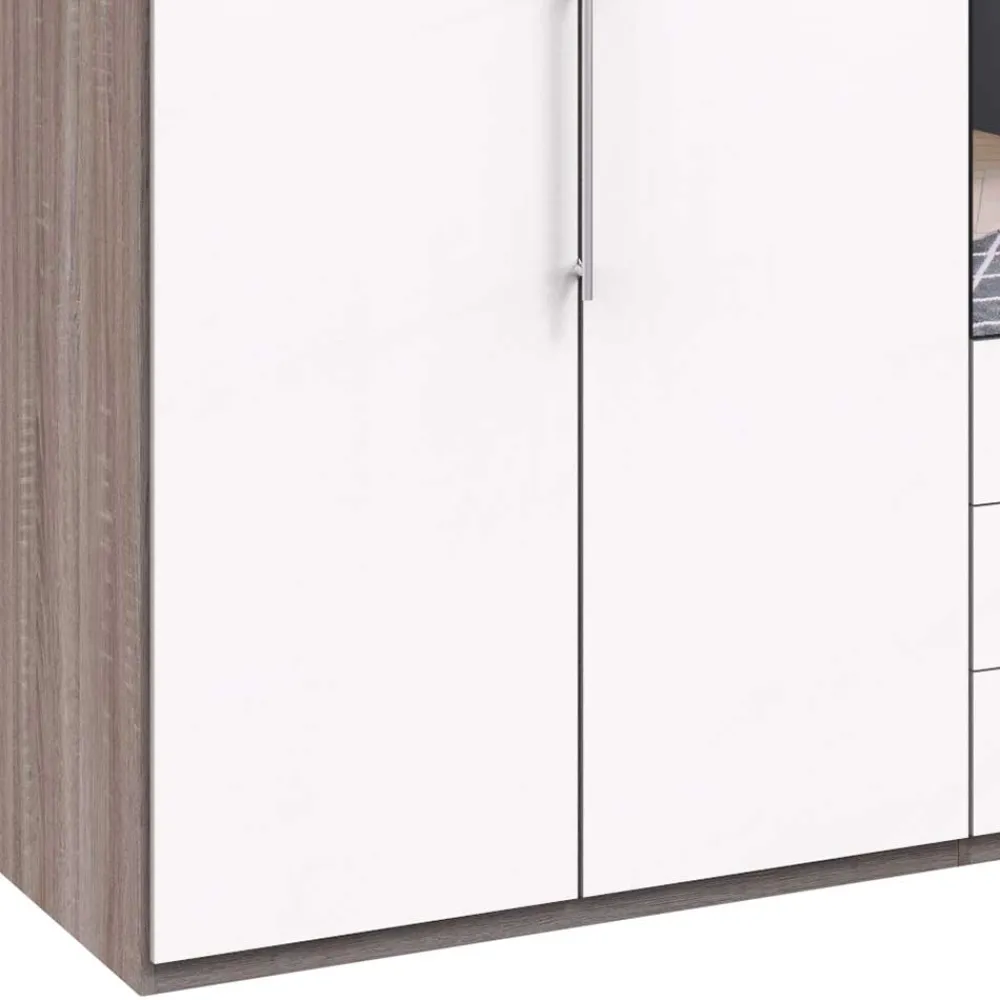 - Fantastischer Kleiderschrank in Weiß und Eiche Trüffelfarben