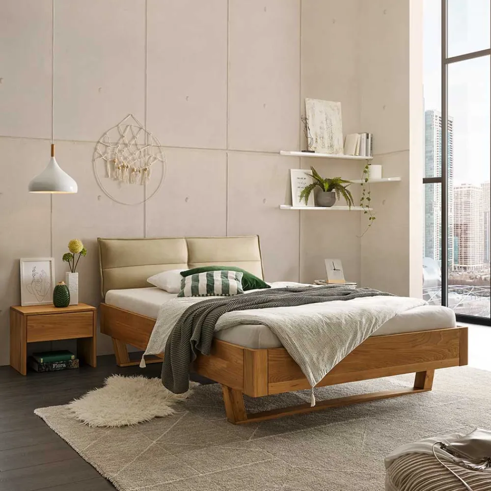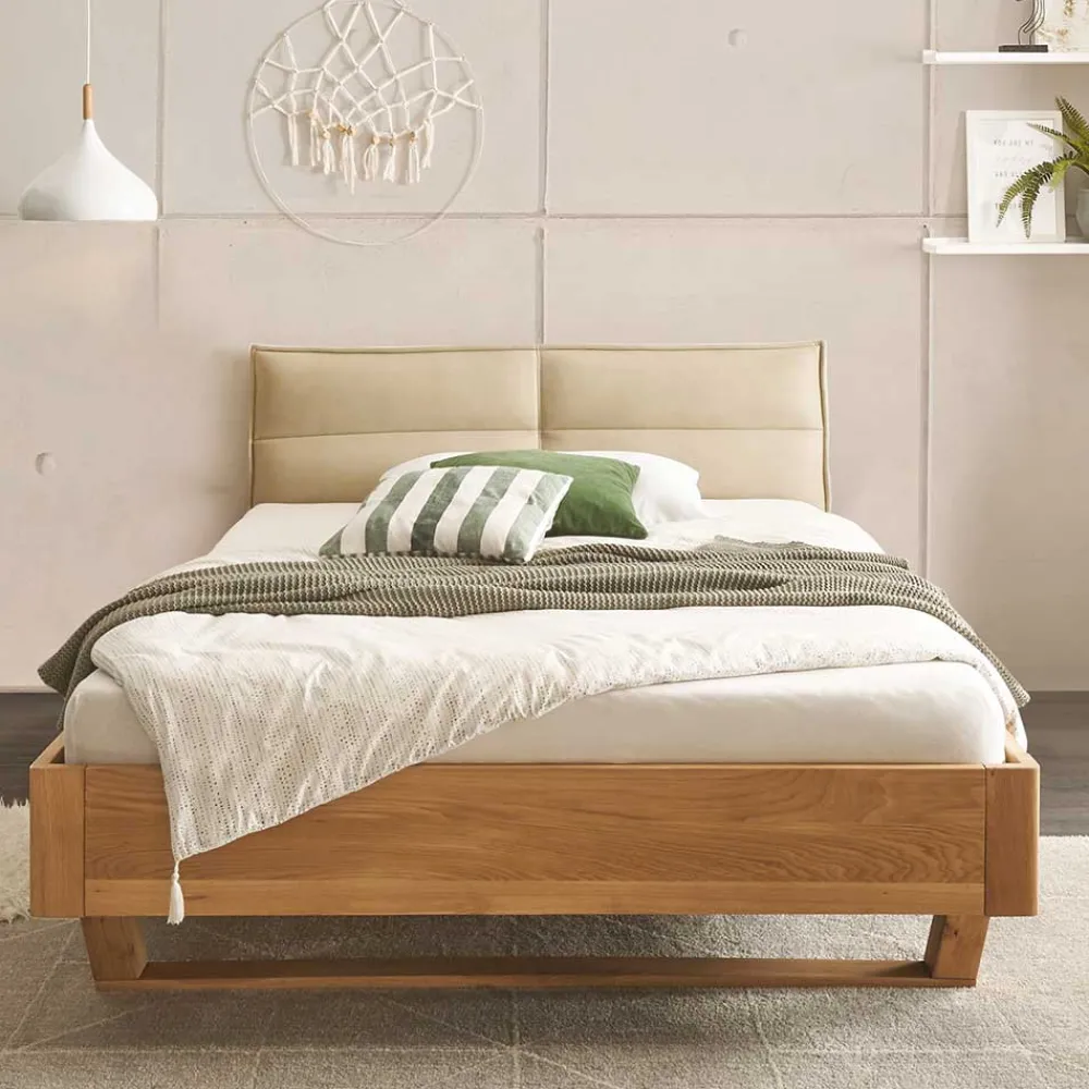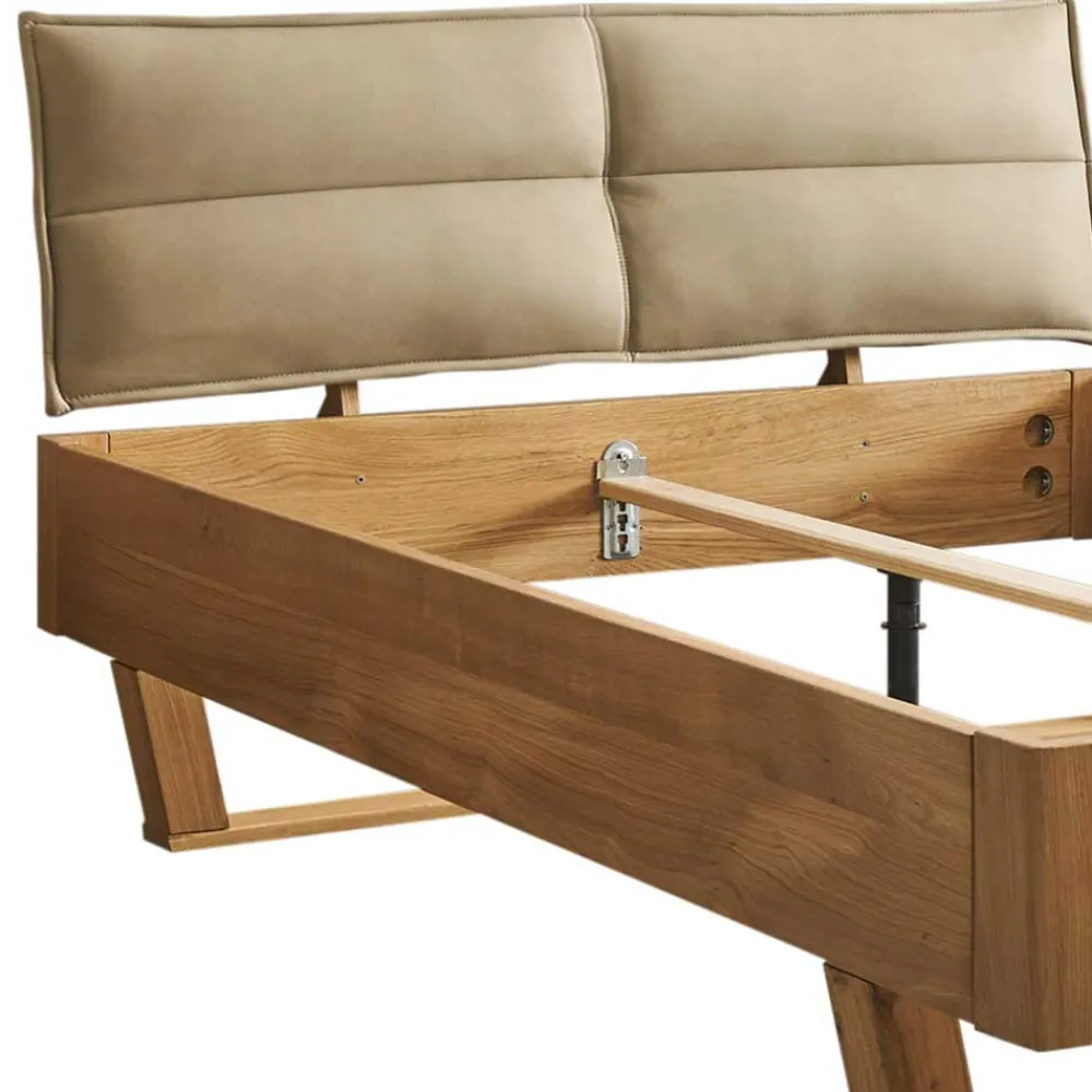- Stilvoll und modern präsentiert sich dieses Bett in Eichefarben und Beige