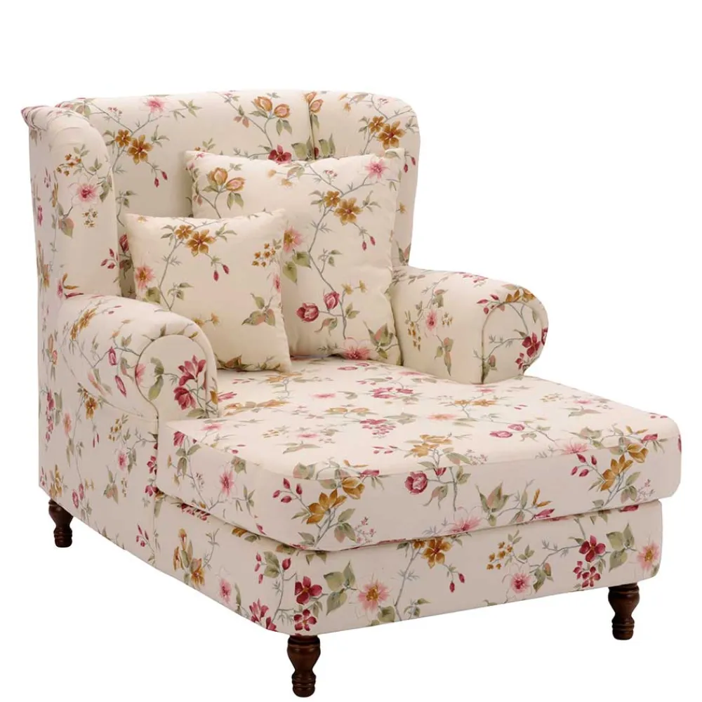 - Hübscher Big Sessel in Weiß, Bunt und Nussbaumfarben