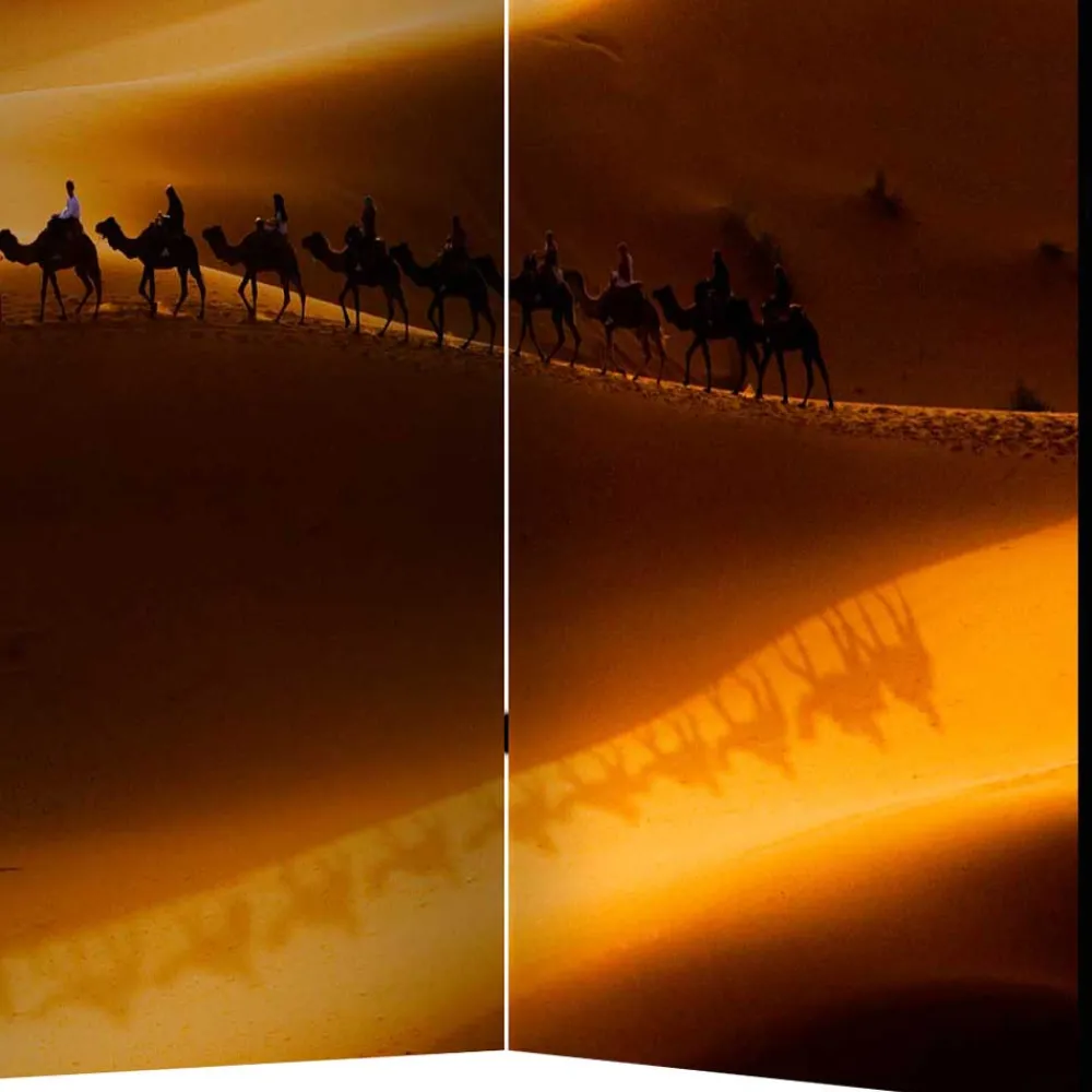 - Das Motiv zeigt eine Wüste mit Kamel Karavane