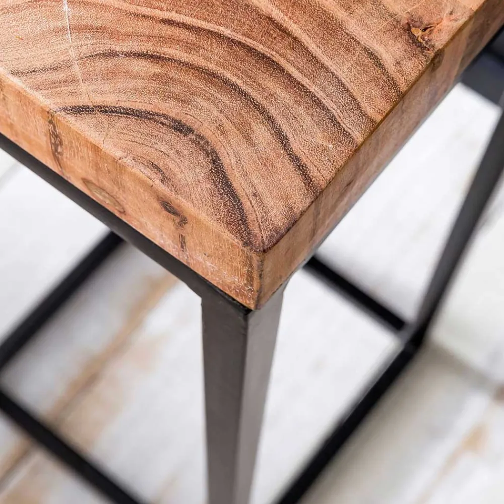 - Modischer Beistelltisch in Akaziefarben und Schwarz
