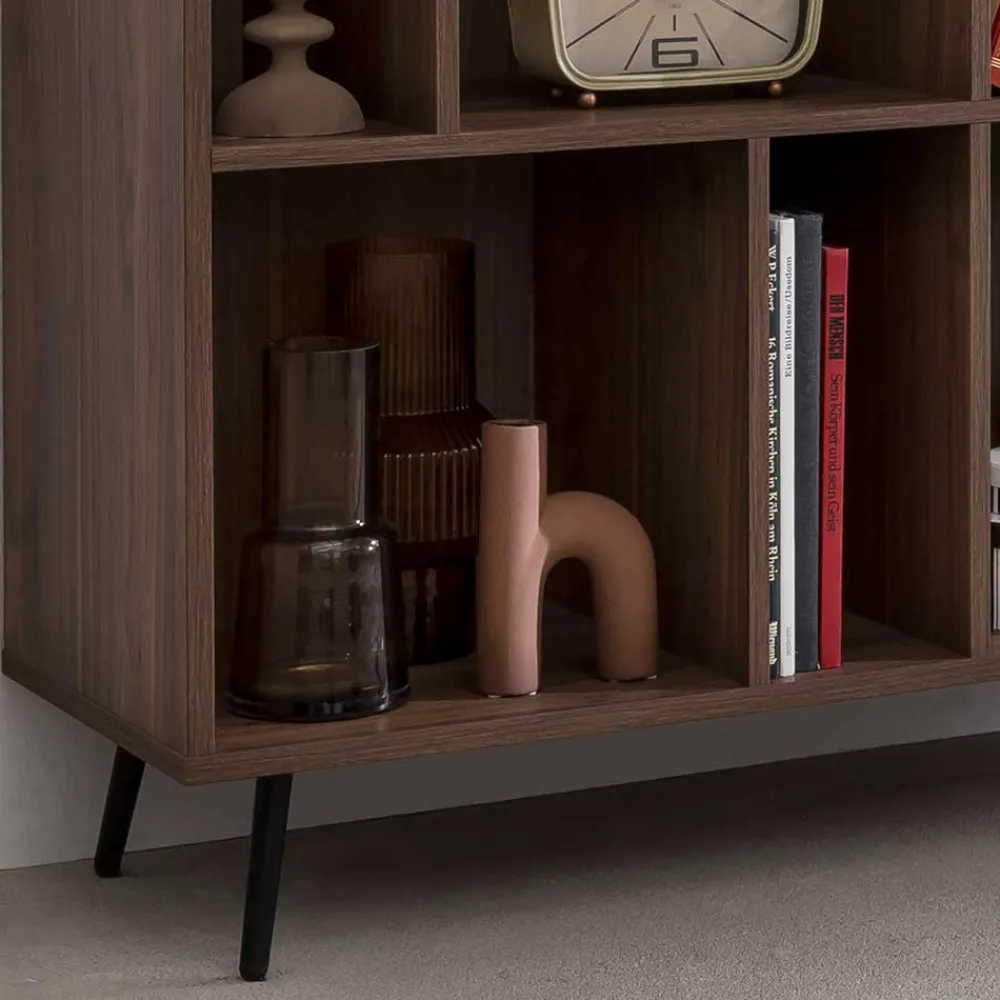 - Sieben offene Fächer bieten Platz für Deko und Bücher
