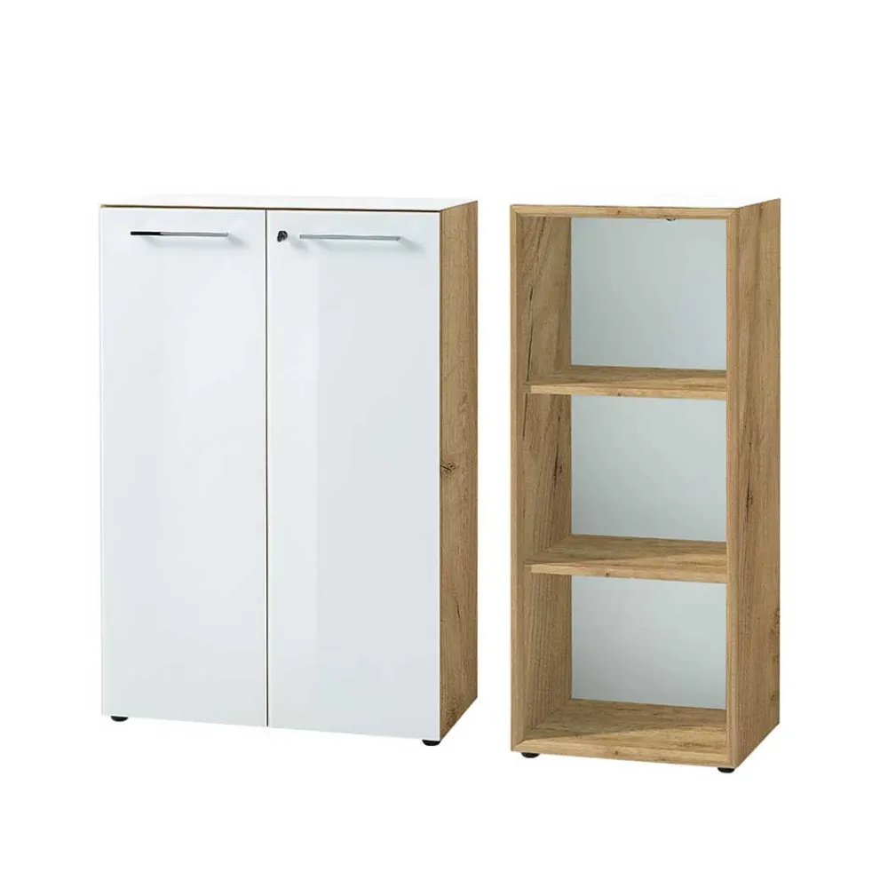 - Funktionale Büro Schrank Kombination in Weiß und Wildeichefarben