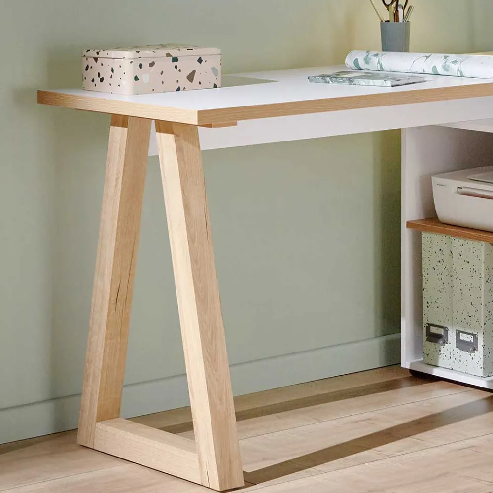 - Hübscher Eckschreibtisch in Weiß und Kerneichefarben