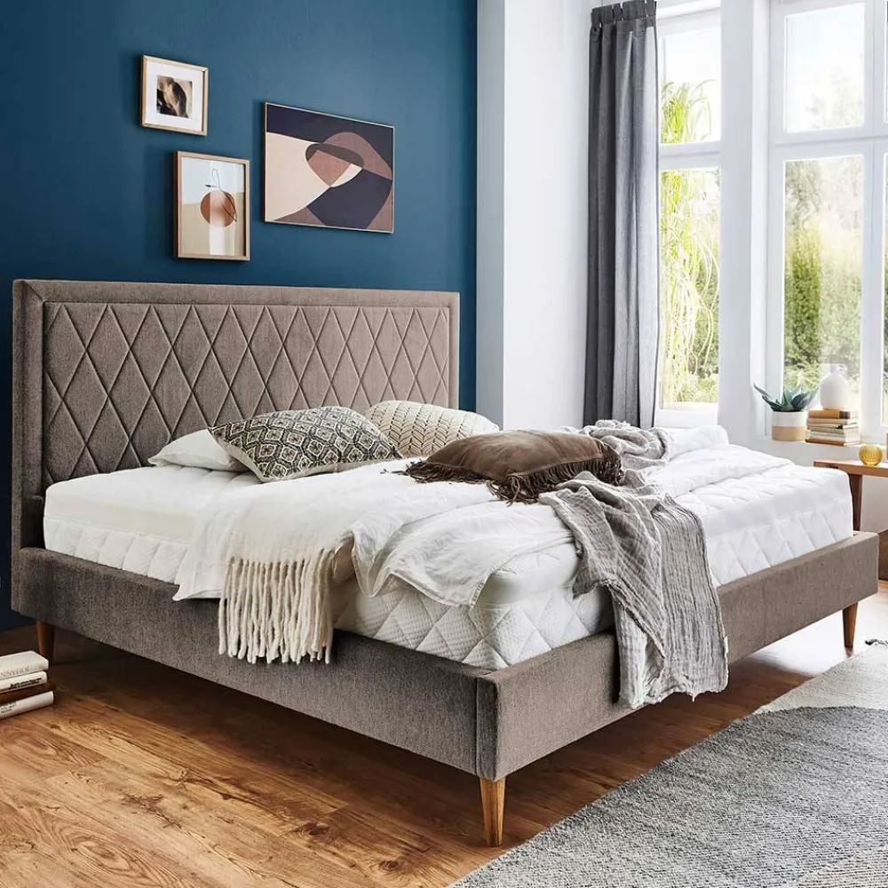 - Wohnliches Polsterbett in Hellbraun
