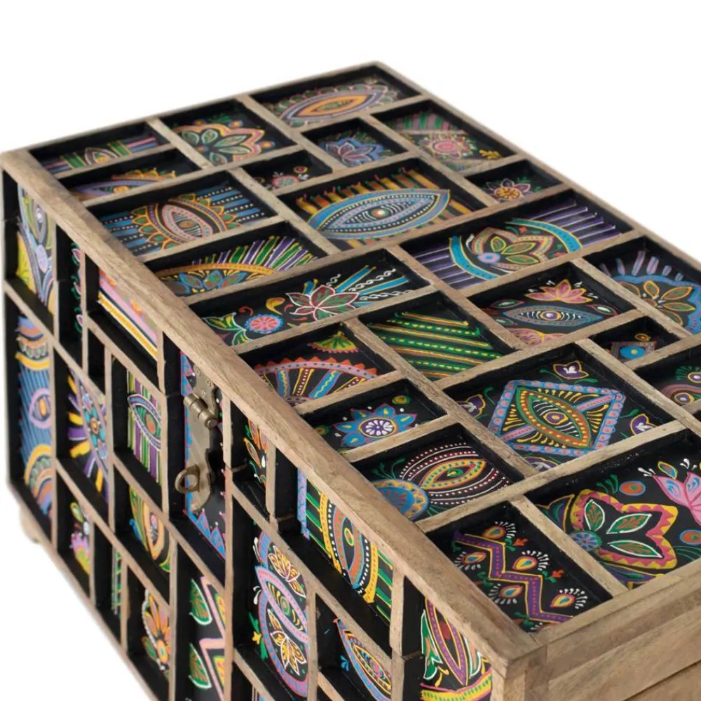 - Auffallende Truhe in Bunt und Mangoholz Naturfarben