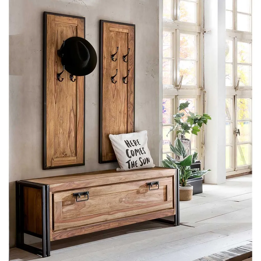 - Rustikale Garderobenmöbel in Akaziefarben und Antikschwarz
