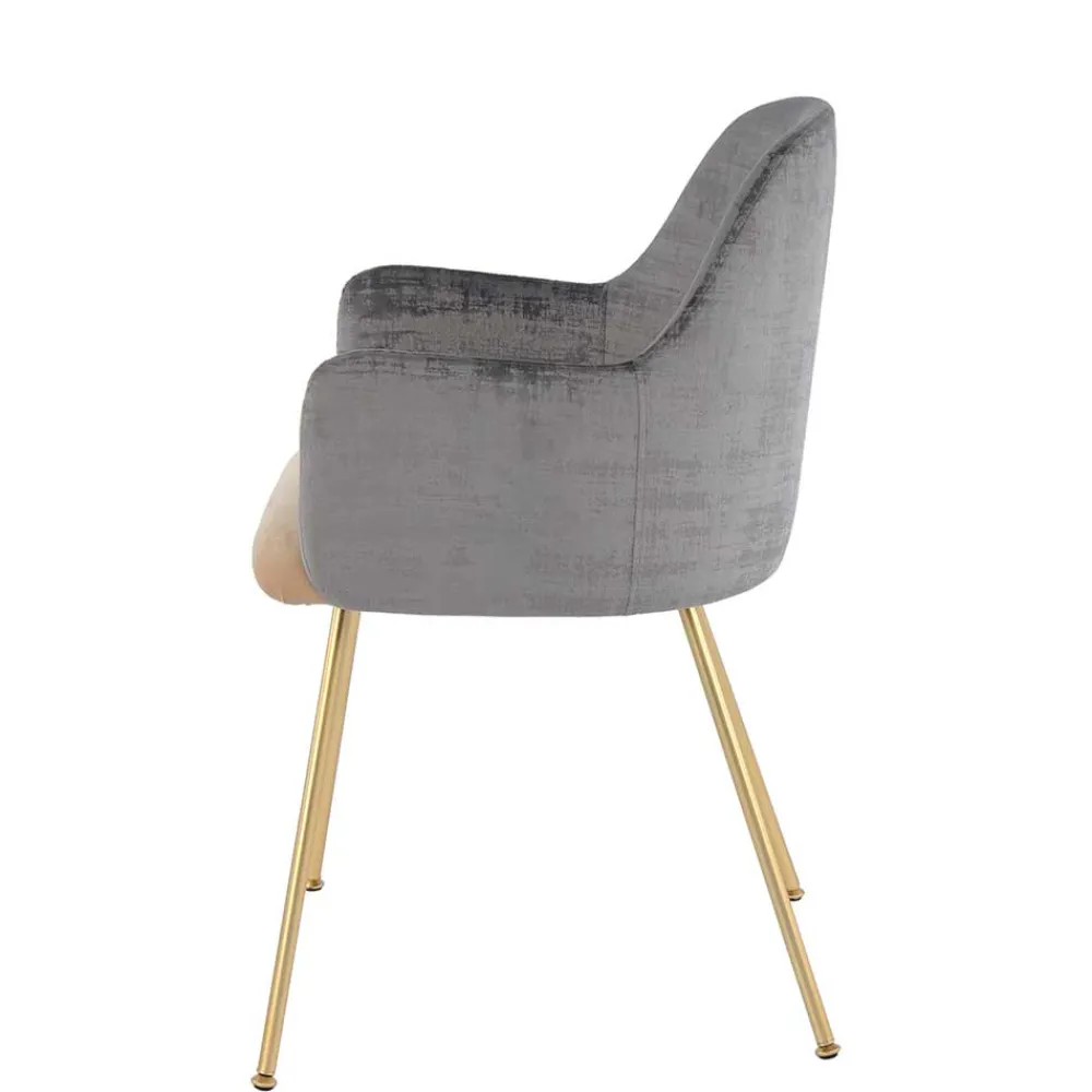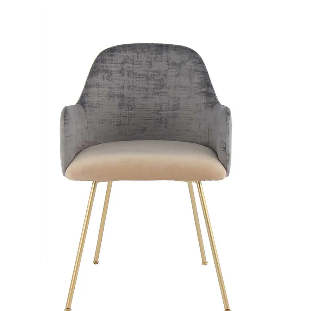 - Eleganter Armlehnstuhl in Grau, Beige und Goldfarben