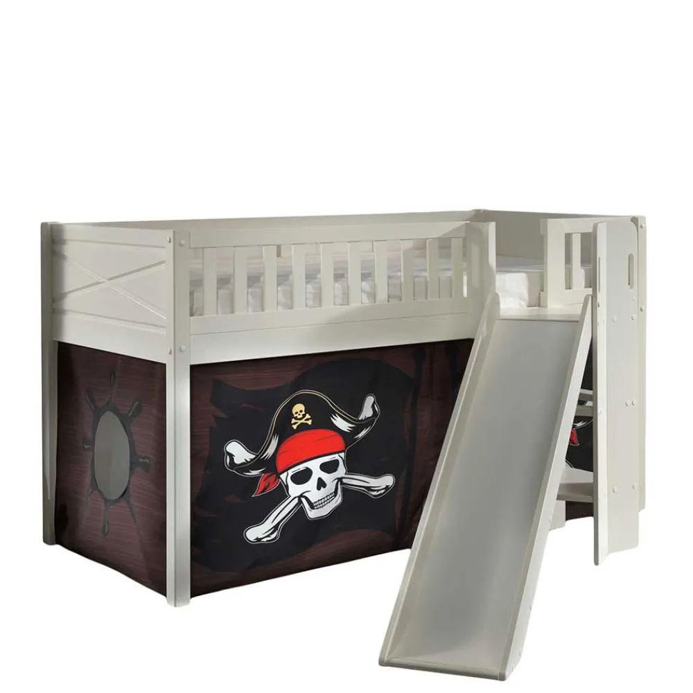 - Aus platzsparenden Gründen verläuft die Rutsche wie abgebildet im 33° Winkel zum Bett, sie kann nach rechts oder links verlaufen, indem die Teile des Absturzschutzes spiegelverkehrt montiert werden