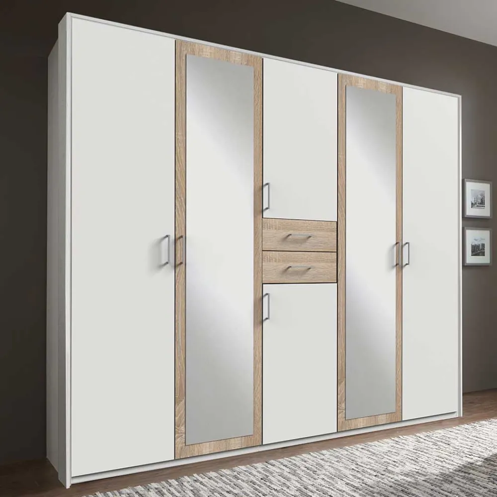- Zeitloser Schlafzimmerschrank in Eiche Sägerau und Weiß