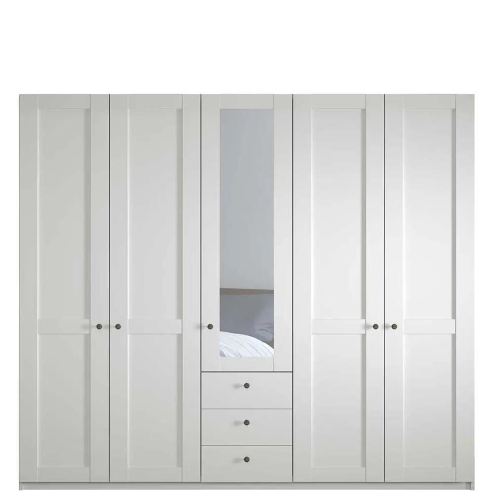 - Innen drei Fachelemente, Breite: 96,4/47,5/96,4 cm, jeweils mit zwei Einlegeböden und einer Kleiderstange ausgestattet