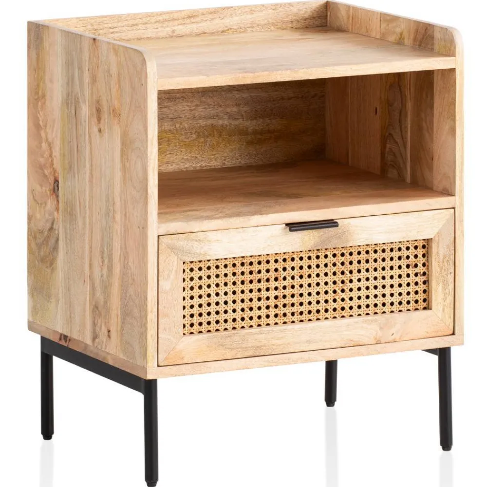 - Aus Mangobaum Massivholz, Rattan, MDF und Metall hergestellt