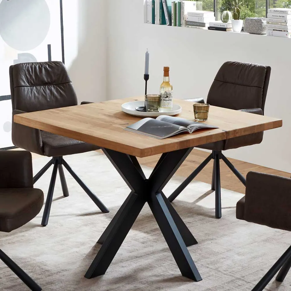 - Kompakter Esstisch in Eichefarben und Schwarz