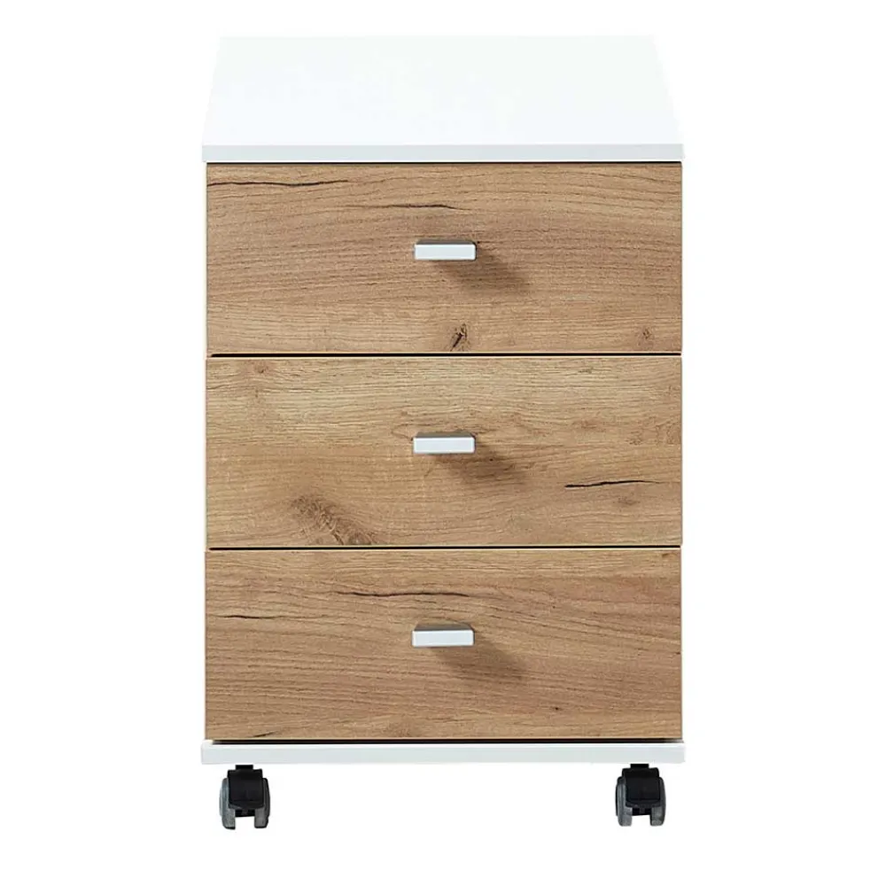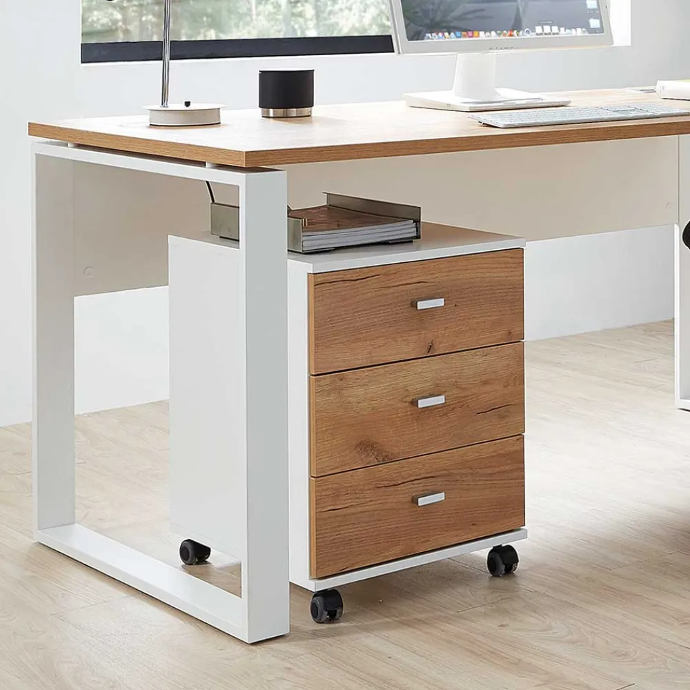 - Funktioneller Rollcontainer in Weiß und Wildeichefarben