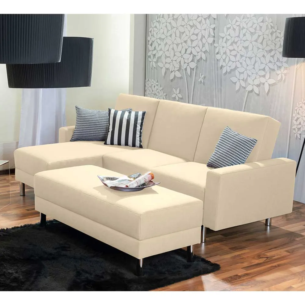 - Ansprechendes Funktionssofa in Beige und Chromfarben