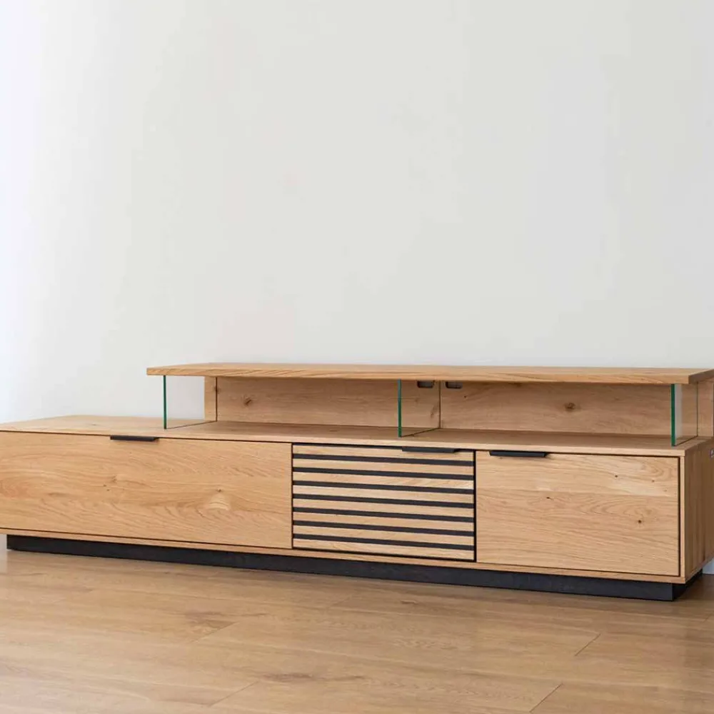- Hochwertiges TV Lowboard in Eichefarben und Schwarz