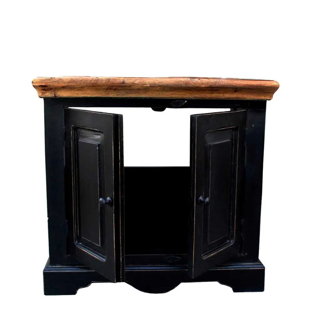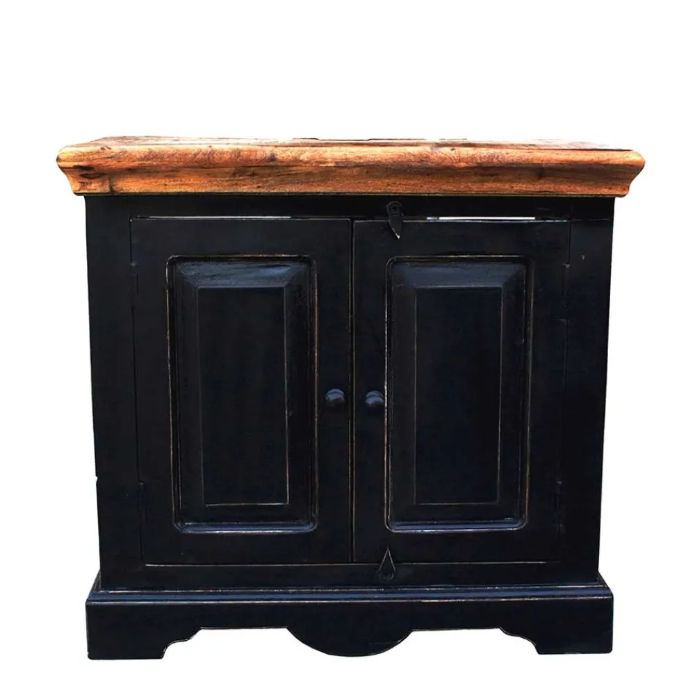 - Schwarz lackierte Oberfläche mit Antik Finish, Deckplatte aus Massivholz, honigfarbig lackiert