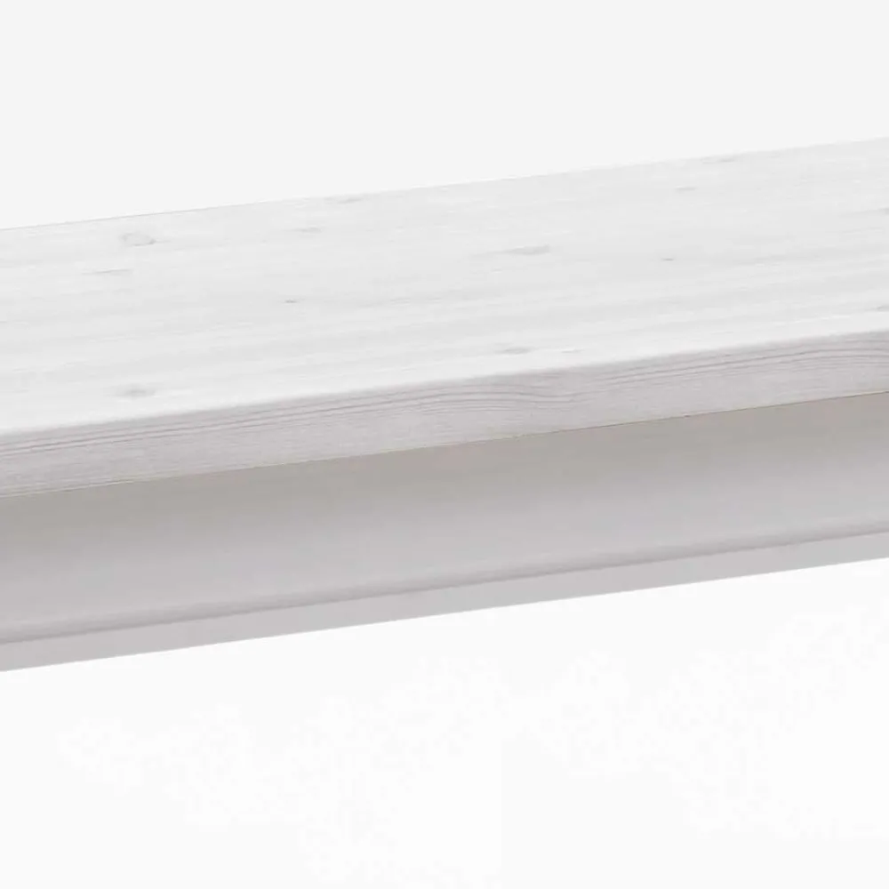 - Weiß lackierte Oberflächen mit durchscheinender Holzmaserung