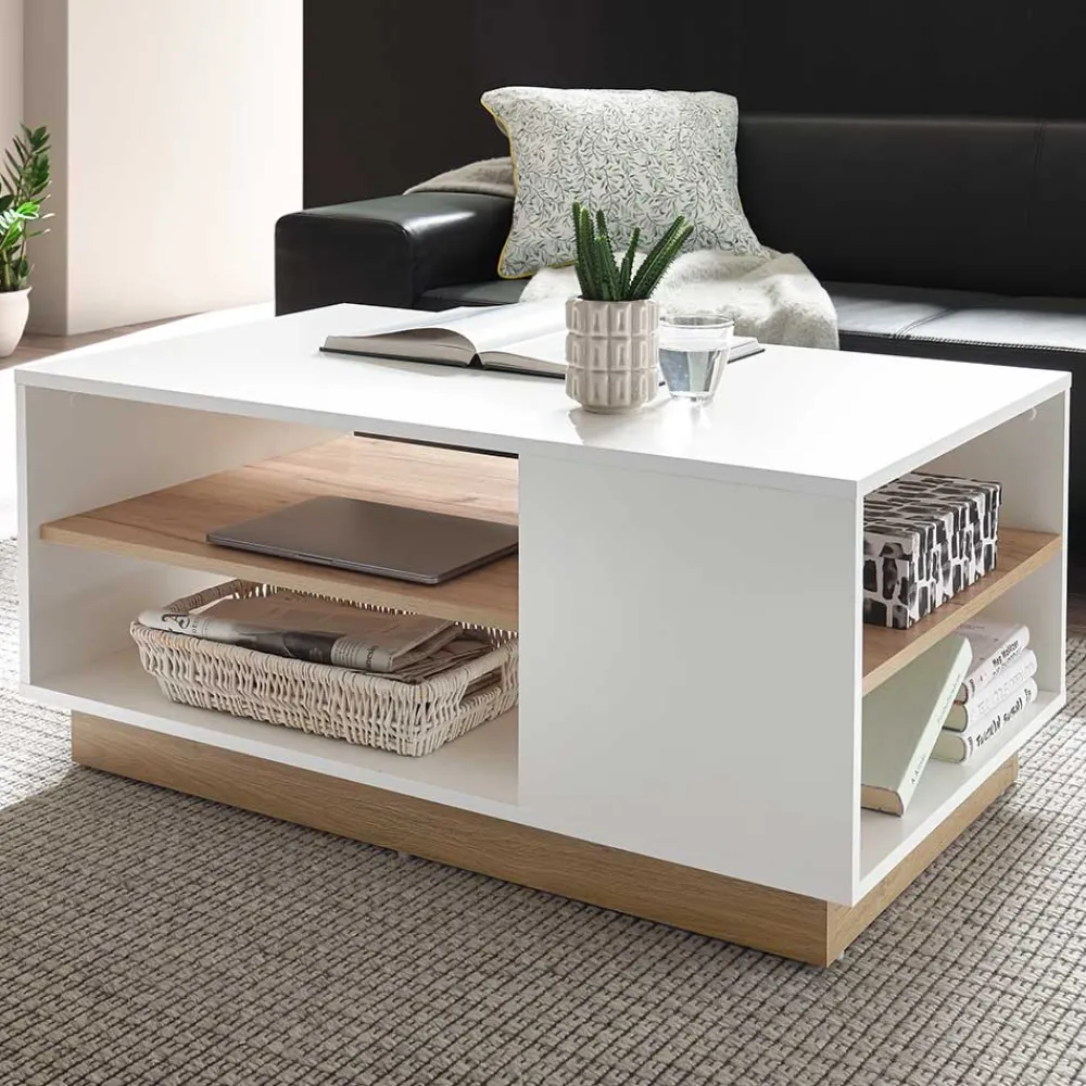 - Moderner Couchtisch in Weiß und Wildeichefarben
