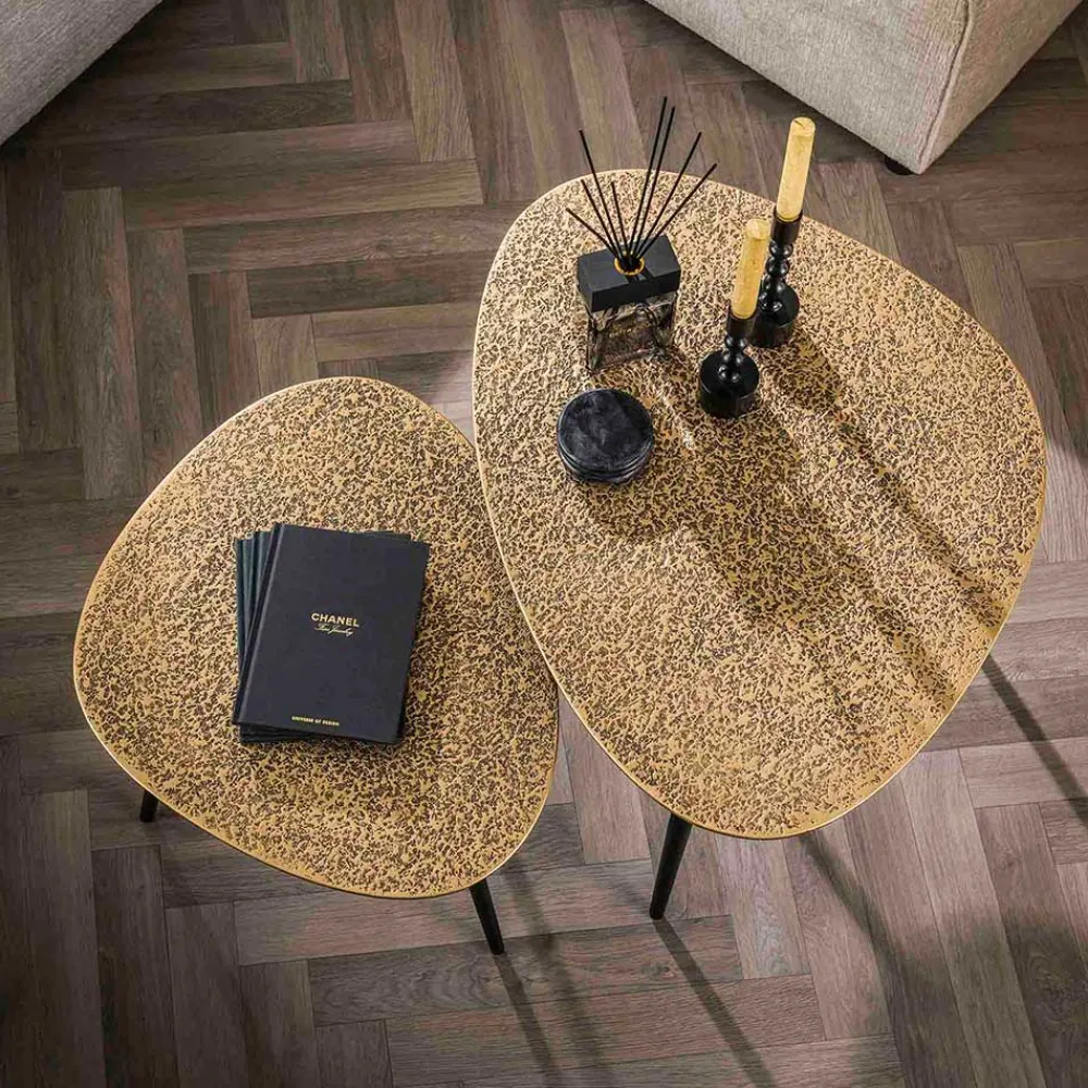 - Drei stabile Tischbeine aus schwarzem Metall tragen die Tischplatten