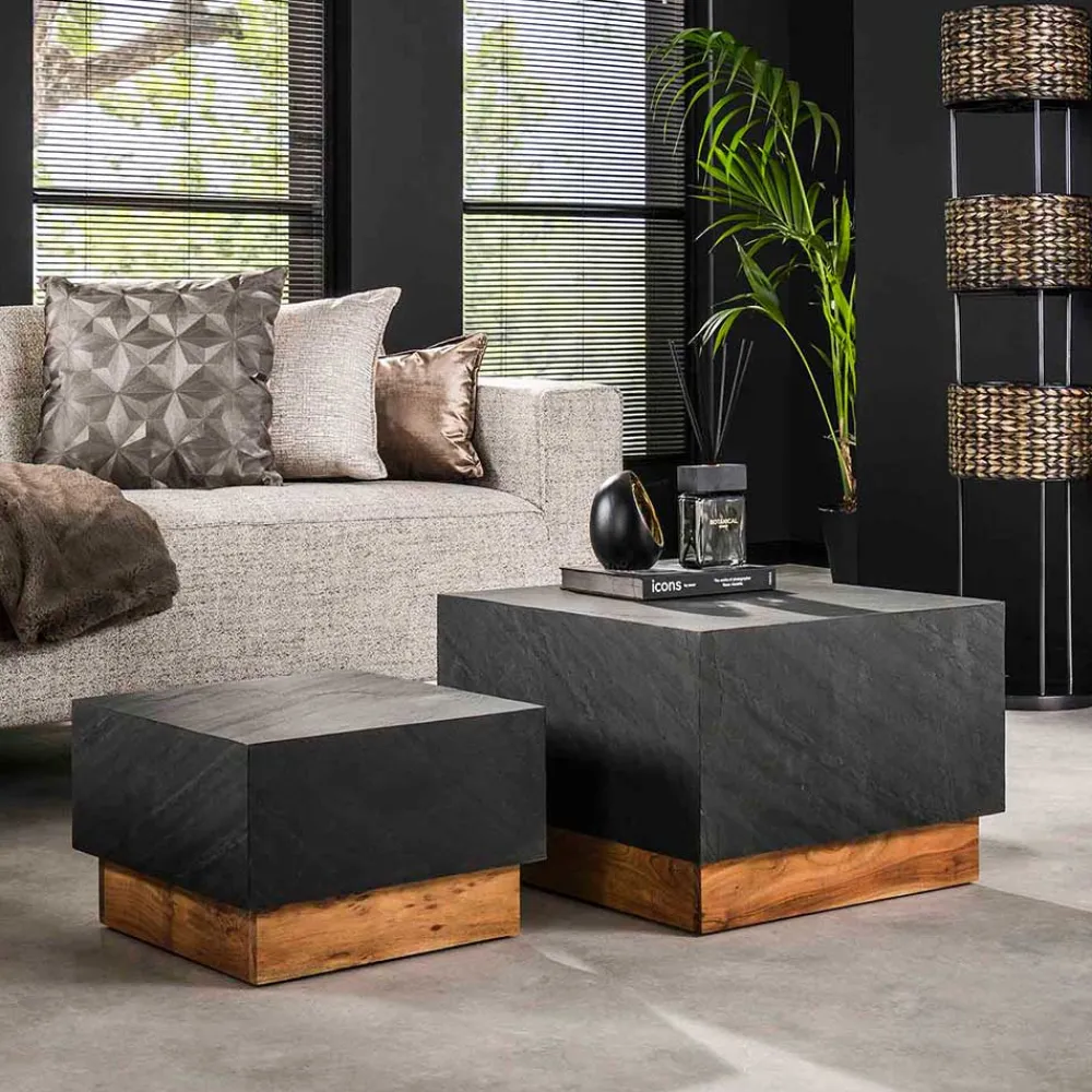 - Die quadratischen Tischplatten bieten eine harmonische Fläche zum Abstellen von Dekoration