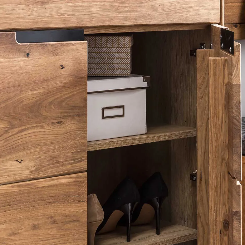 - Front aus massivem Eichenholz (durchgehende Lamelle), Korpus aus Holzwerkstoff gefertigt