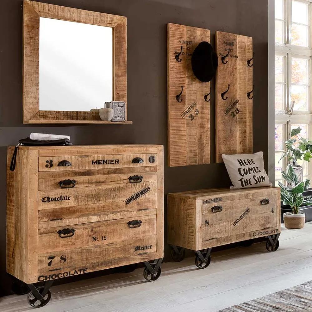 - Großzügige Garderobenmöbel in Mangoholz Naturfarben