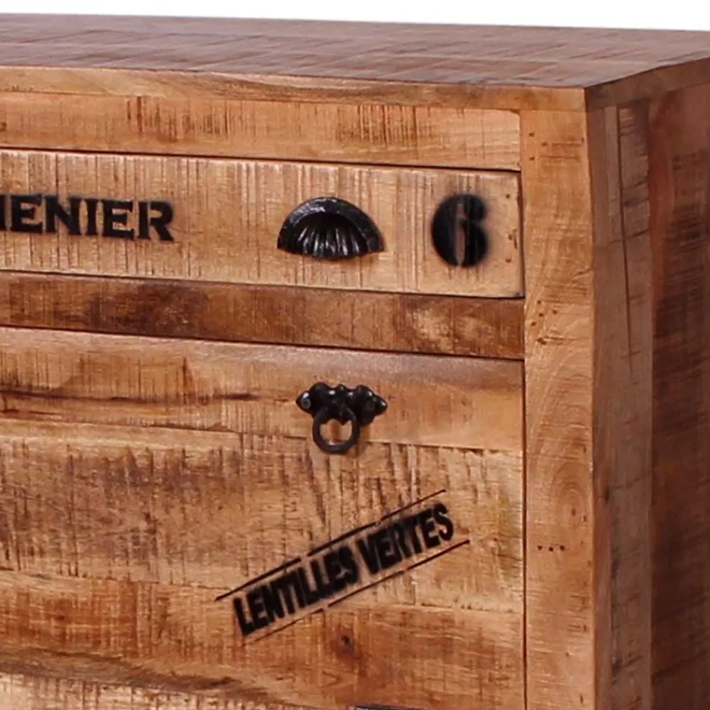 - Pflegeleichte, lackierte und mit Antikfinish versehene Holzoberfläche