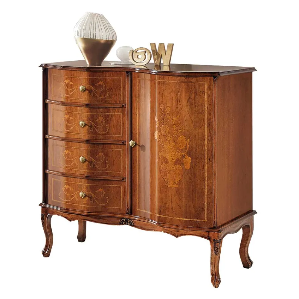 - Vier Schubladen aus Pappelholz mit Holzauszug, Front dekorativ gerundet