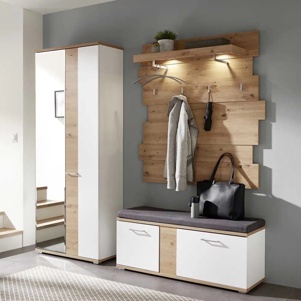 - Hervorragende Dielenmöbel in Weiß und Wildeichefarben