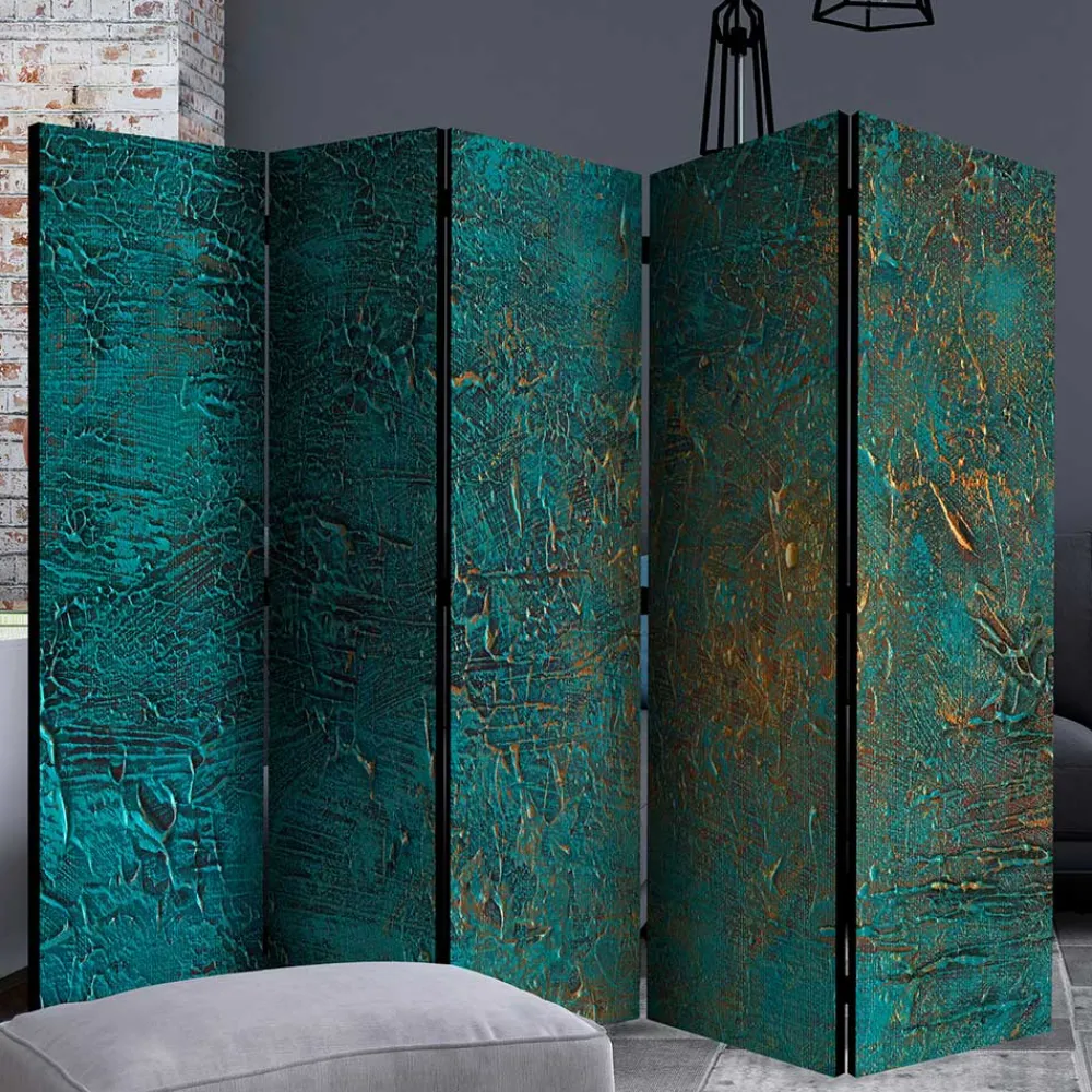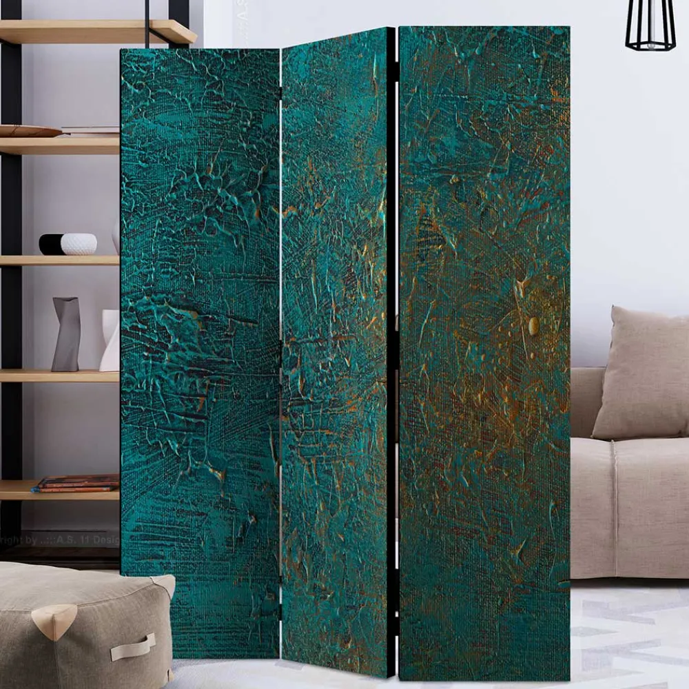 - Aparter Paravent Sichtschutz in changierenden Türkis- und Goldtönen