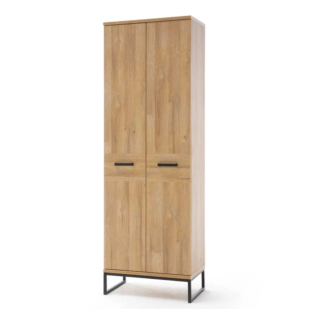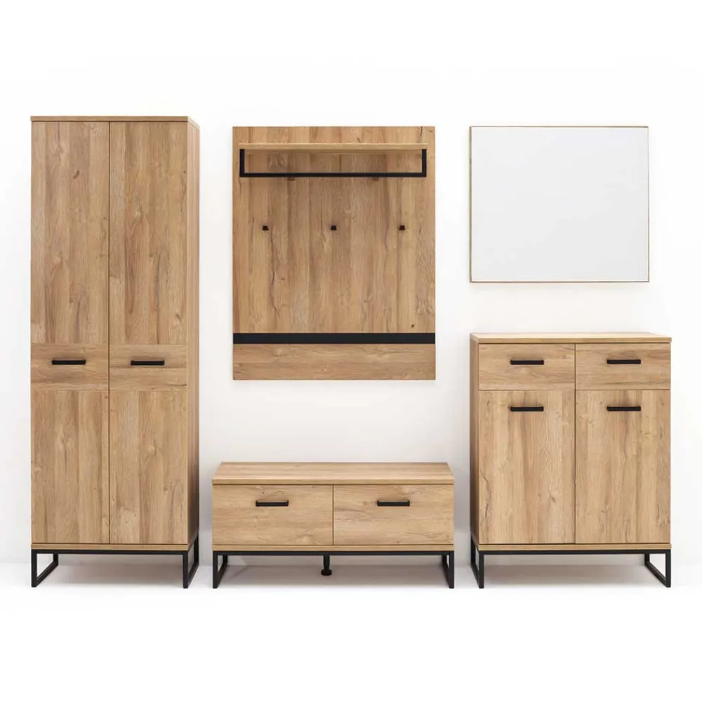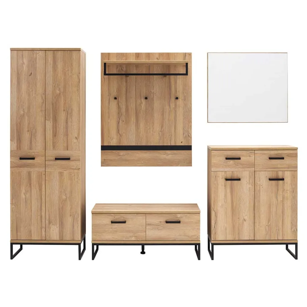 - Melaminbeschichtete Oberfläche in Holzoptik Wildeiche, Metall schwarz pulverbeschichtet