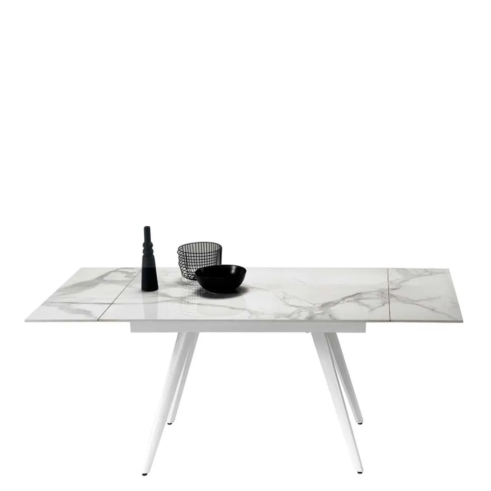 - Hochwertige Tischplatte aus Sinterstein in weiß-hellgrauer Marmor Optik