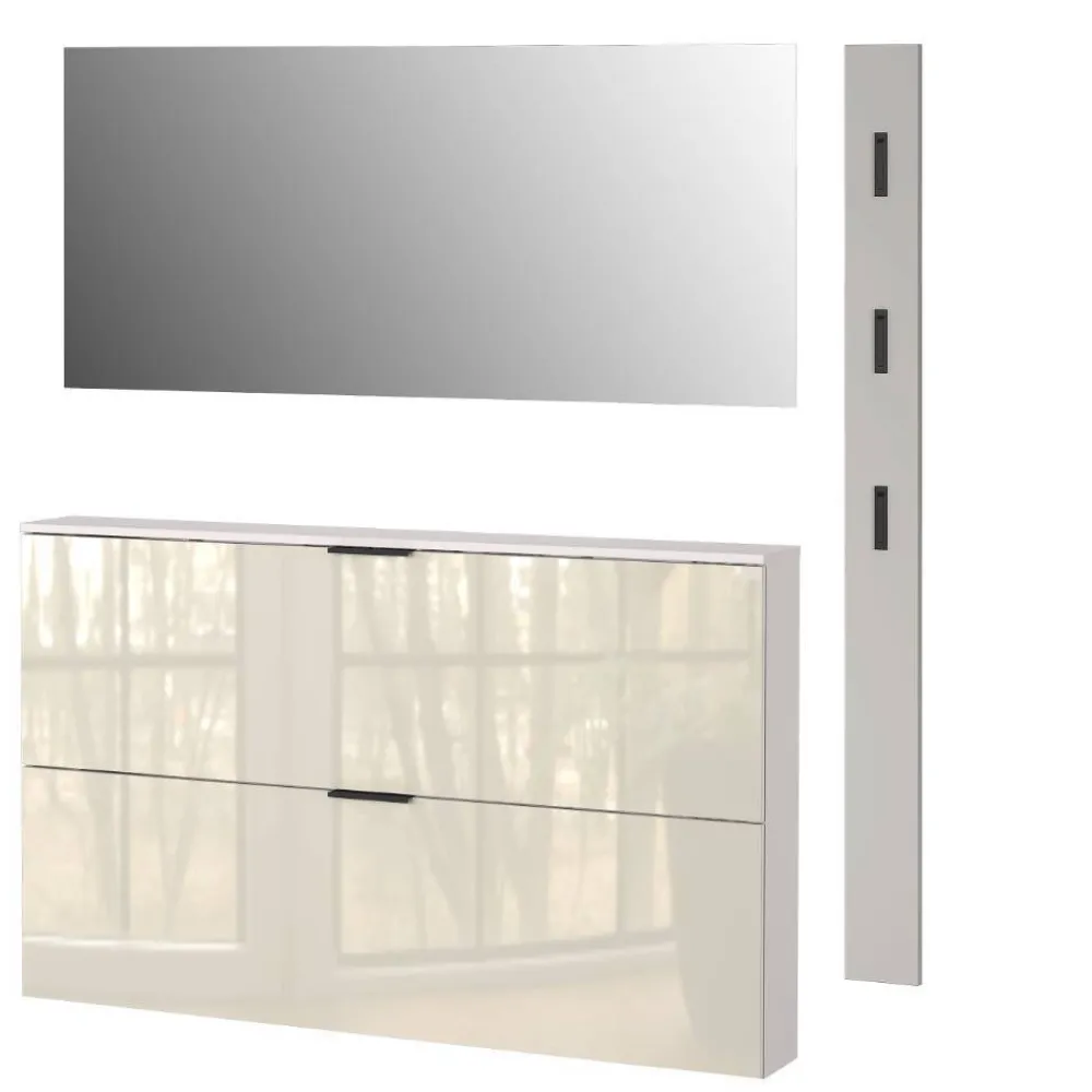 - Hinter jeder Klappe zwei Metall-Schuhkörbe, je nach Größe der Schuhe Platz für bis zu 12 Paar