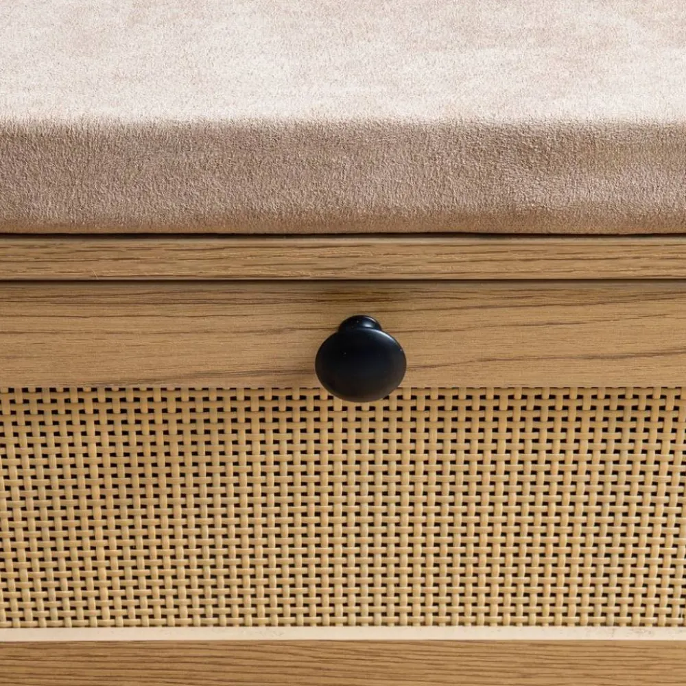 - Ansprechende Garderobenbank in Eichefarben, Beige und Schwarz