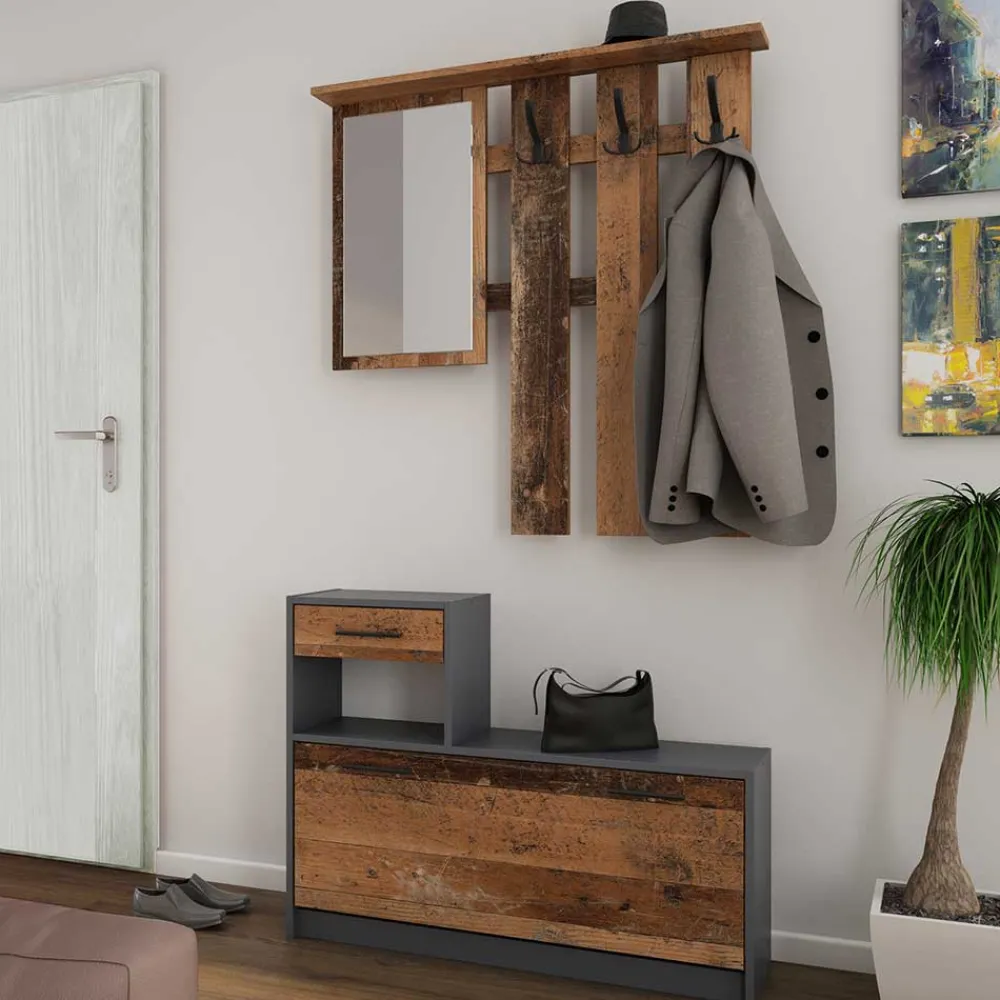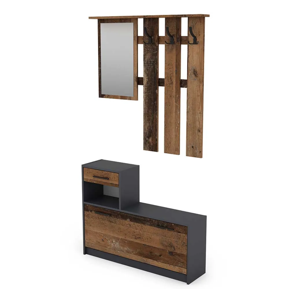 - Coole Garderobenkombination in Anthrazit und Altholz Optik