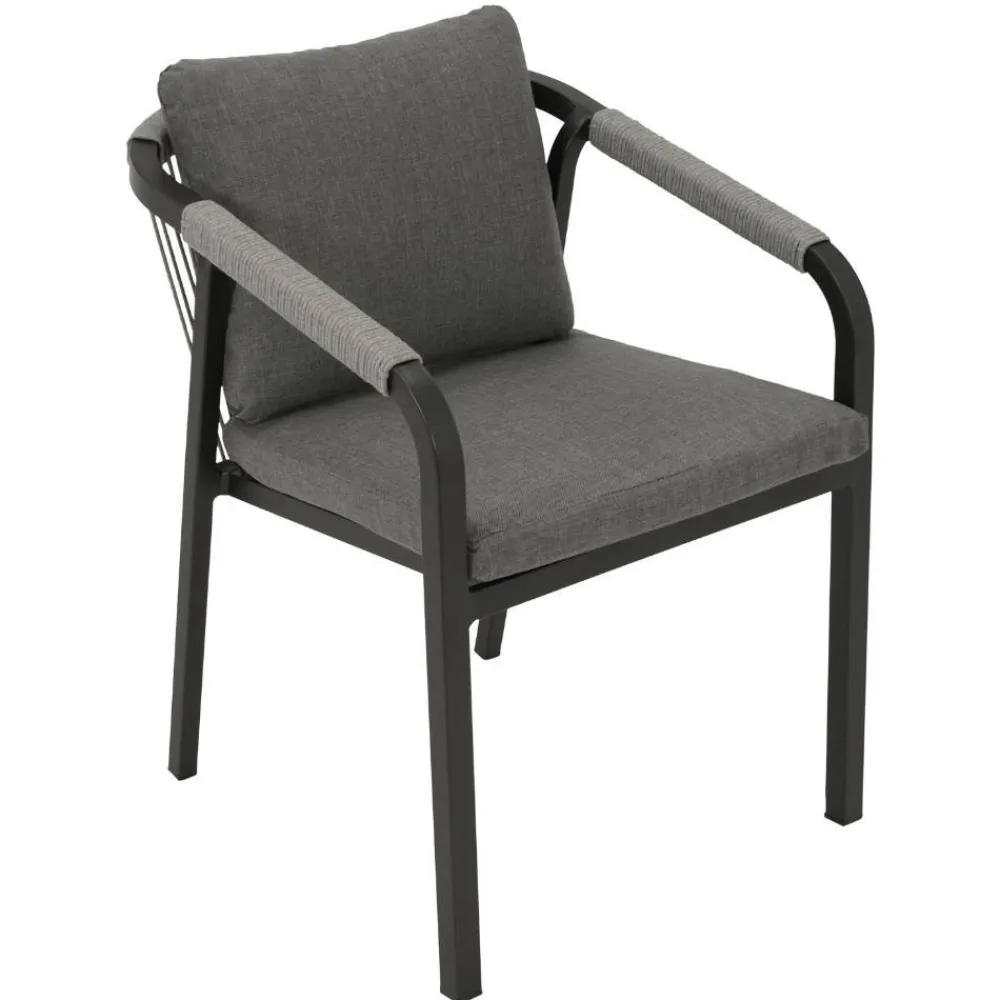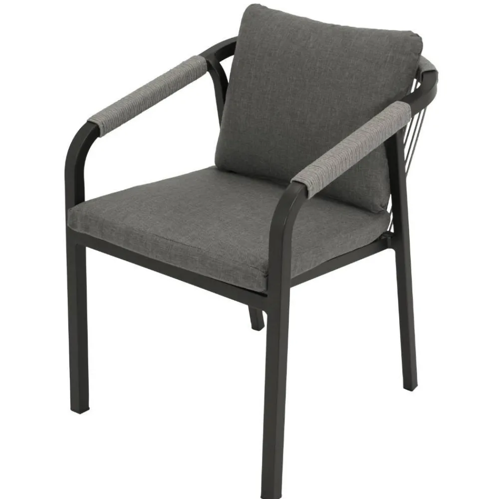 - Nach vorn abfallende Armlehnen mit Kordel umwickelt