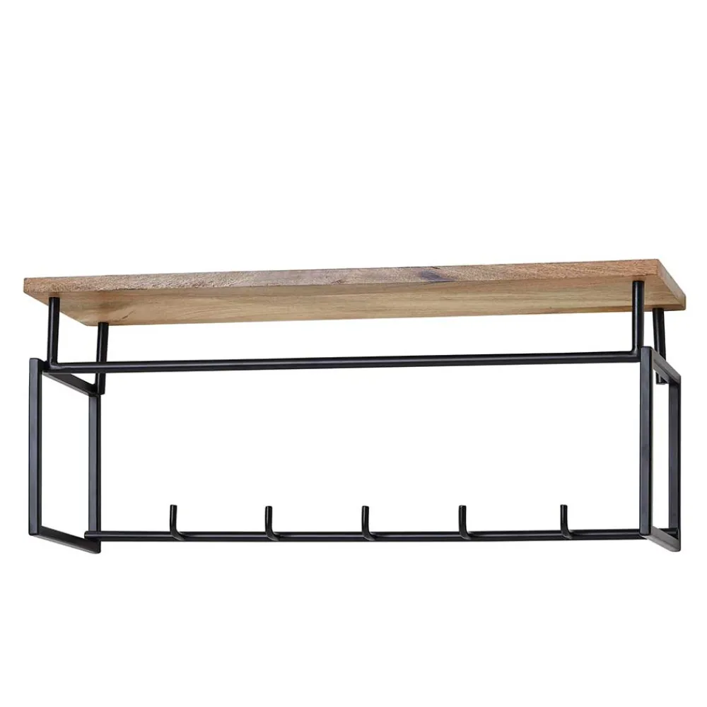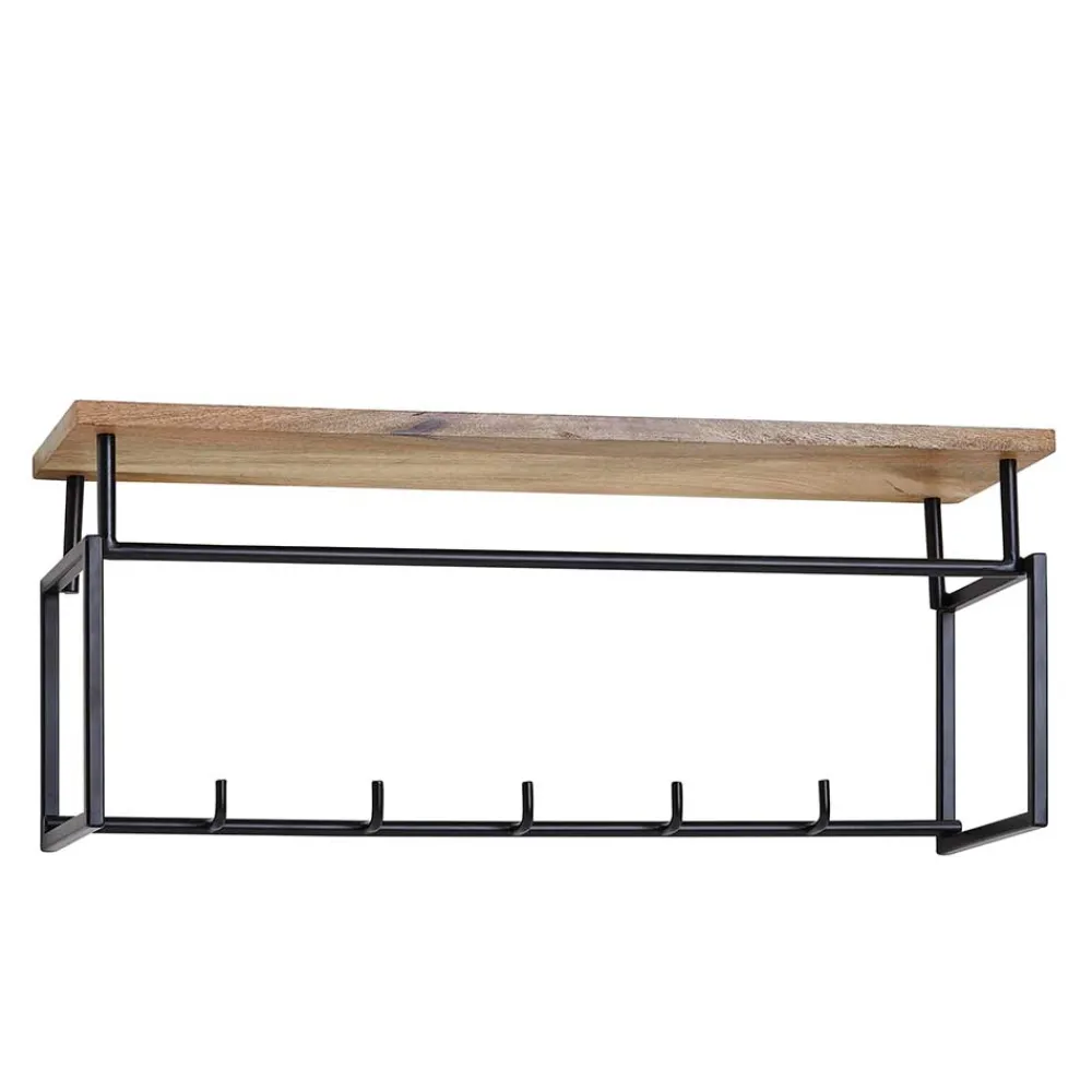 - Rustikale Wandgarderobe in Schwarz und Mangoholz Naturfarben