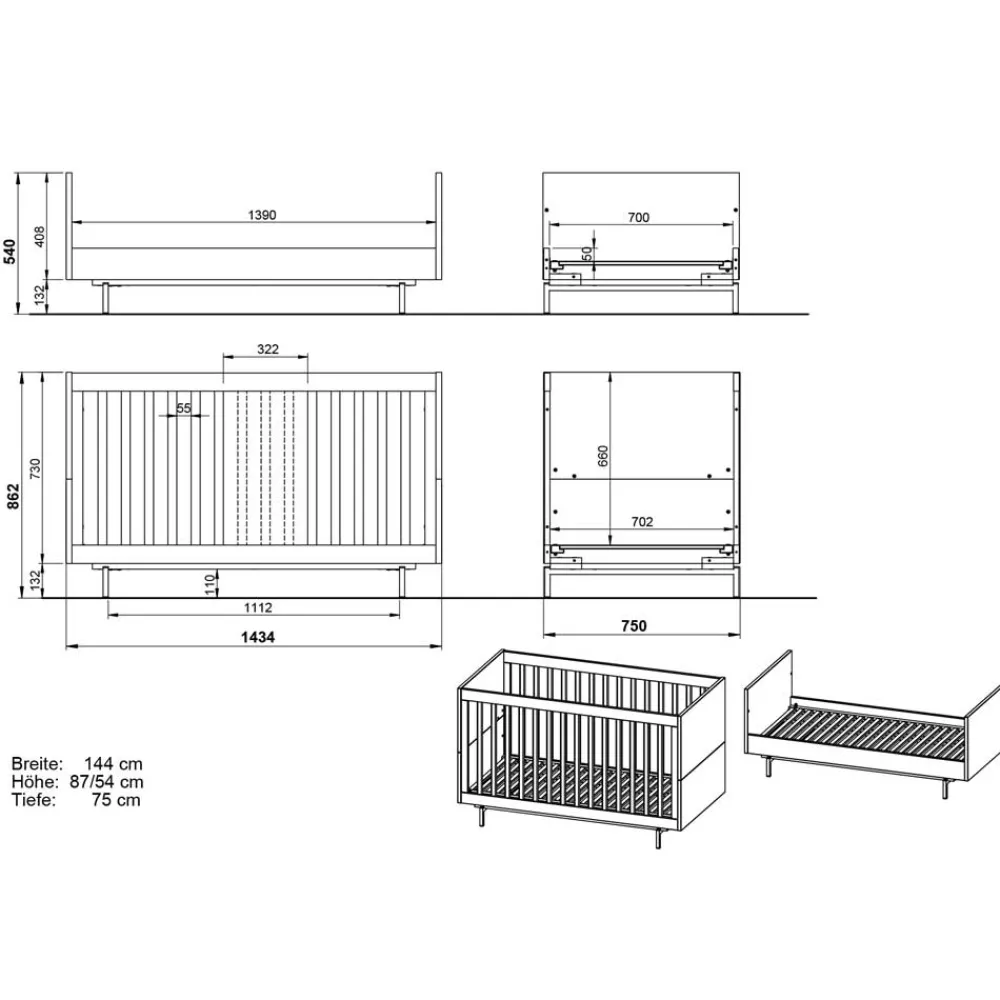 - Modernes Babybett in Grau