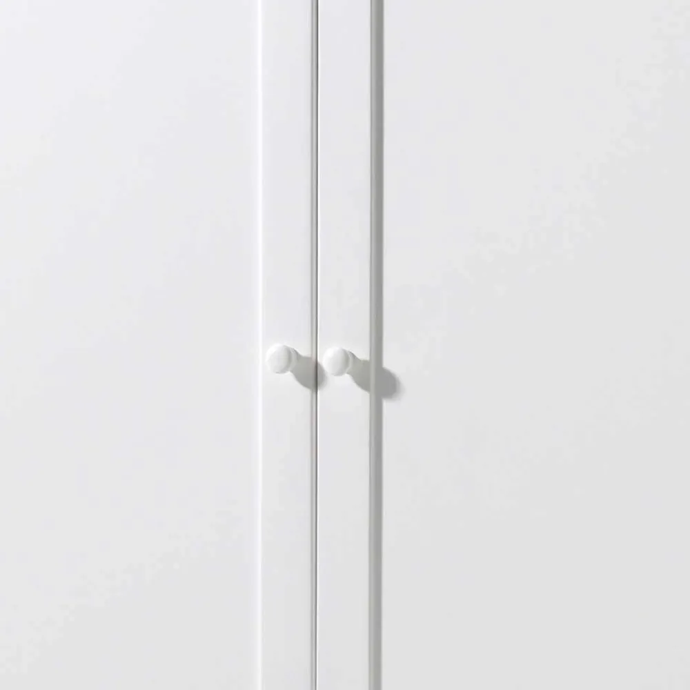 - Innen oben ein fester Boden, darunter eine Kleiderstange und unten ein verstellbarer Einlegeboden