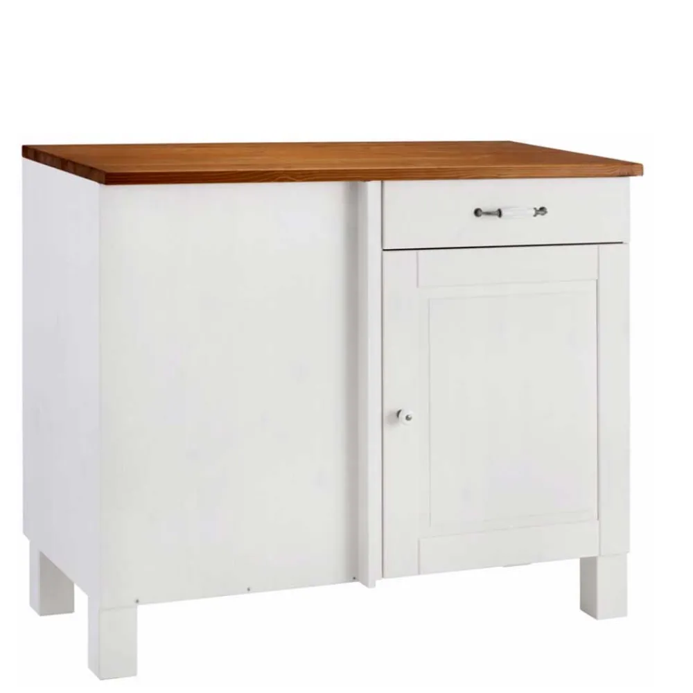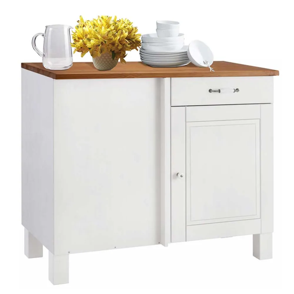 - Attraktiver Küchen-Unterschrank in Weiß und Kiefer Honigfarben