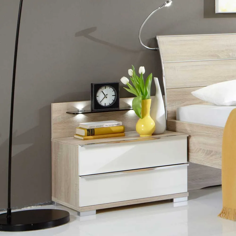 - Wundervolle Nachtkommode in Eiche Sägerau und Weiß