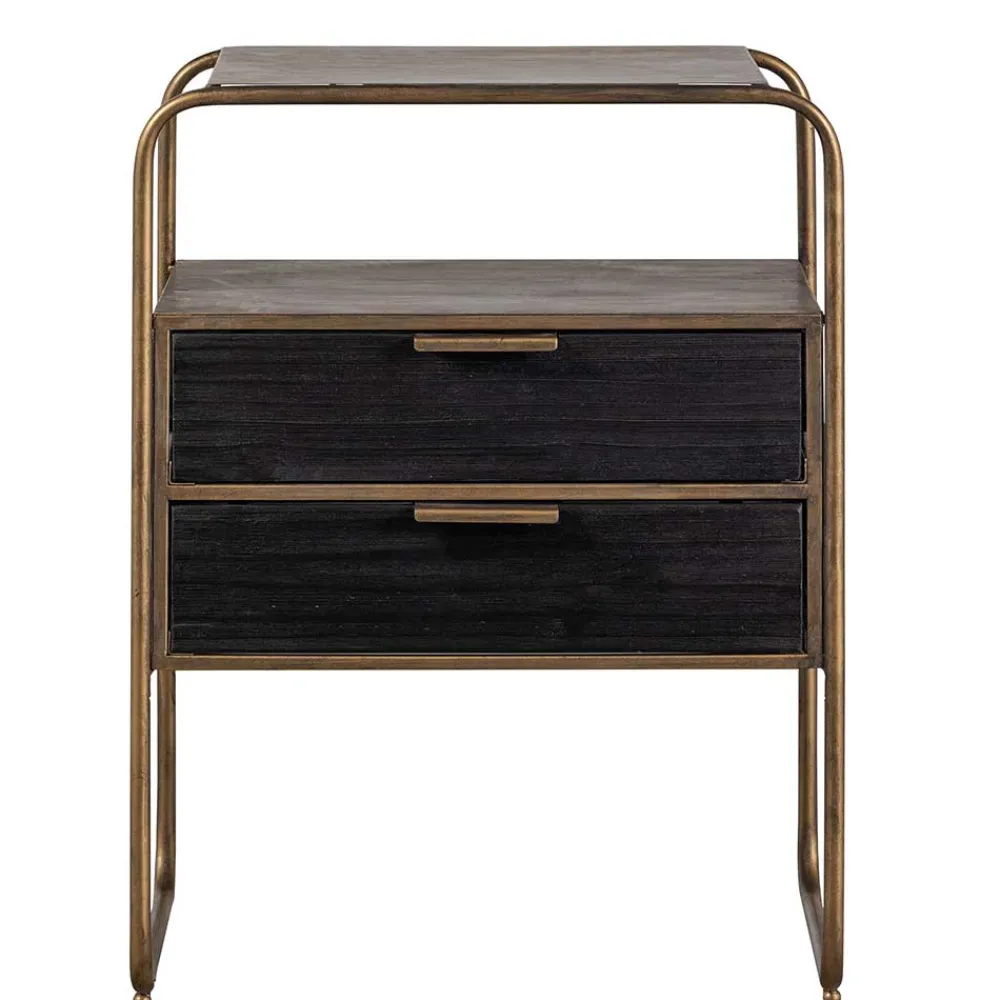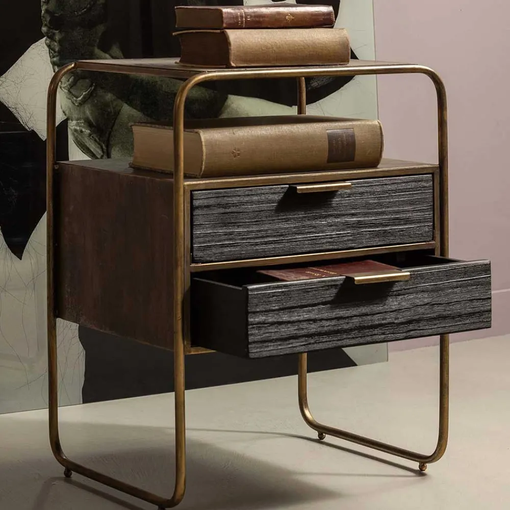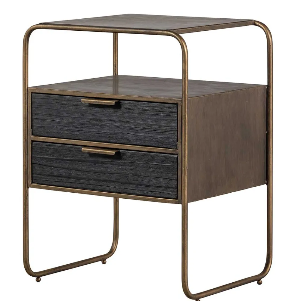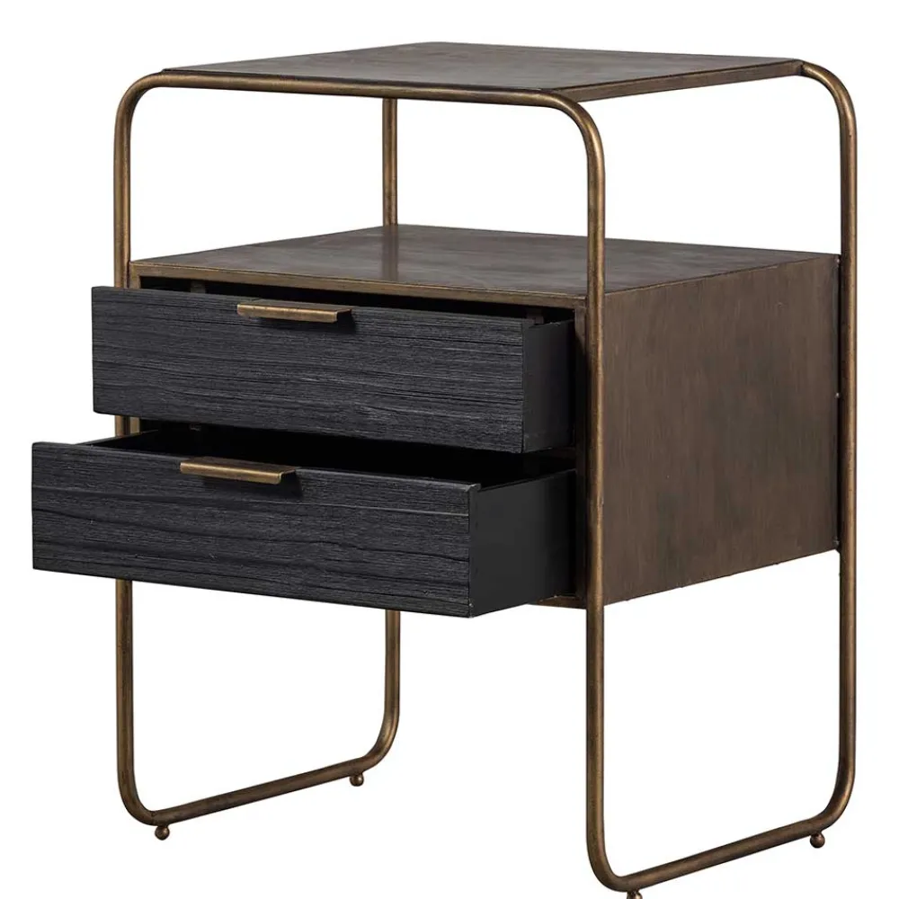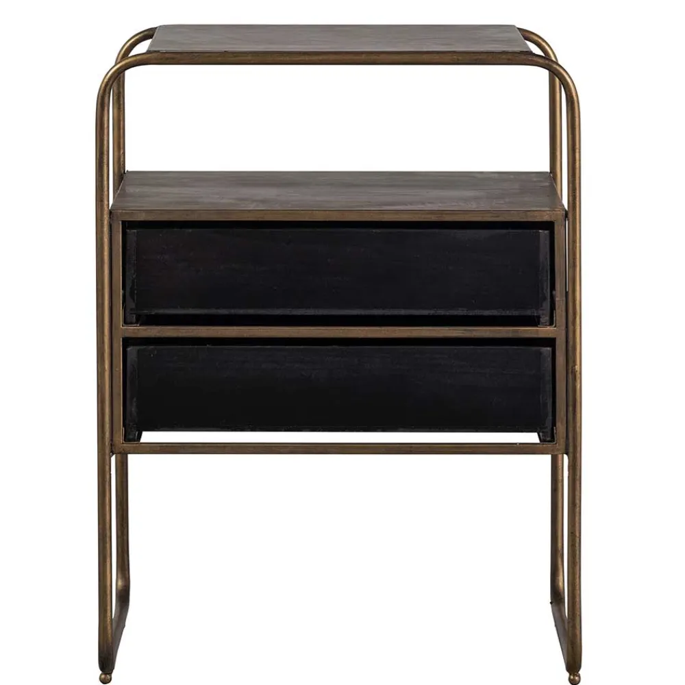- Stylischer Nachttisch in Altmessingfarben und Schwarz