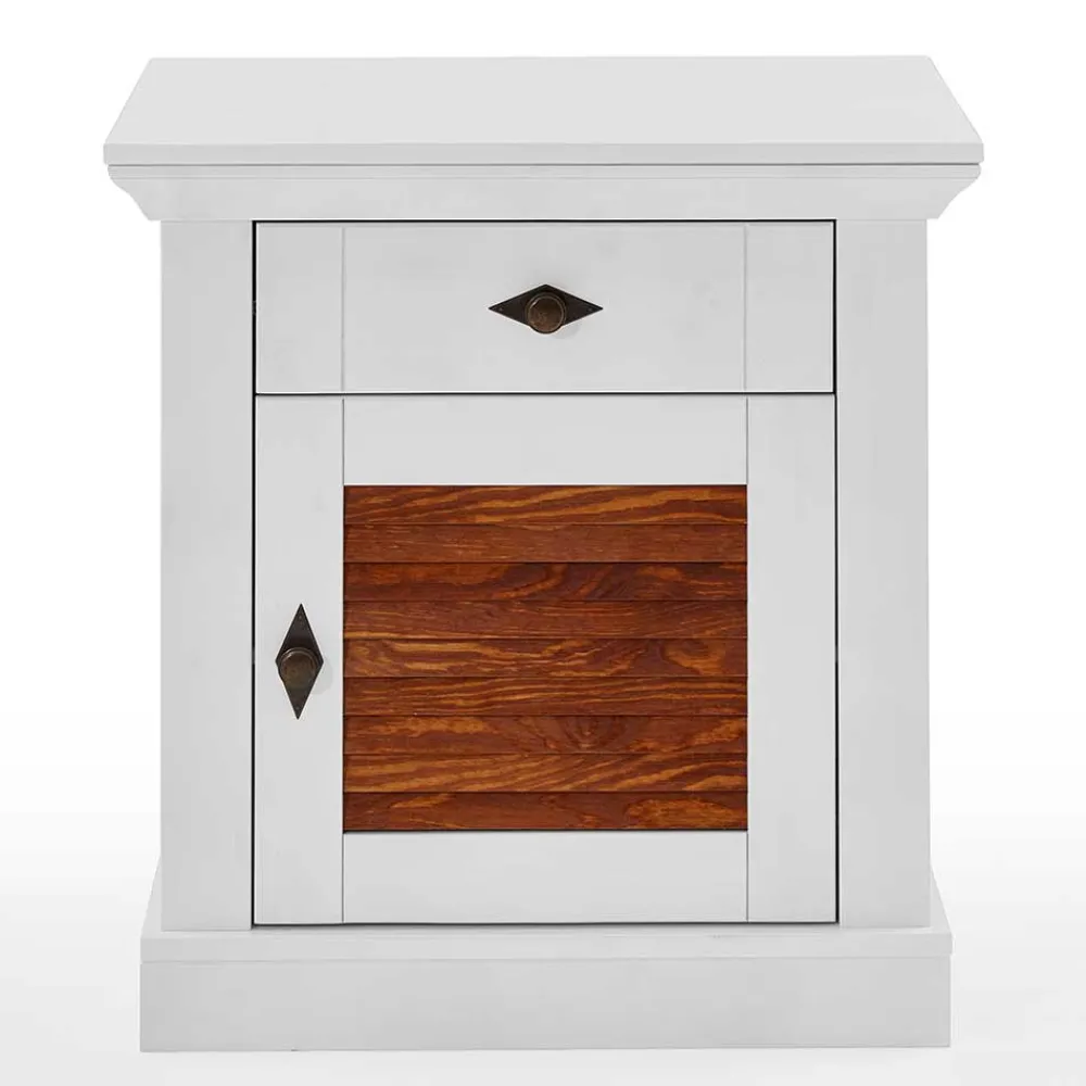 - Schicke Nachtkommode in Weiß und Kiefer Bernsteinfarben