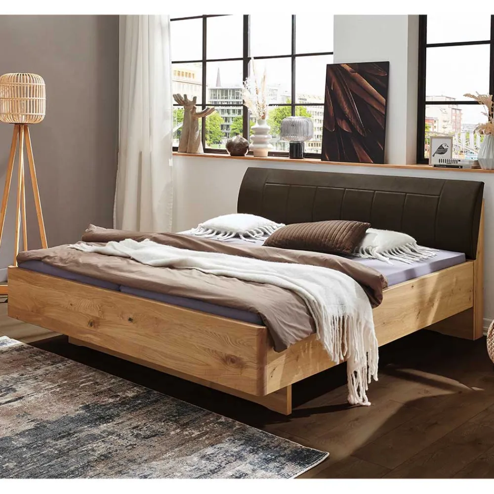 - Komfortables Bett in Eiche Bianco und Dunkelbraun