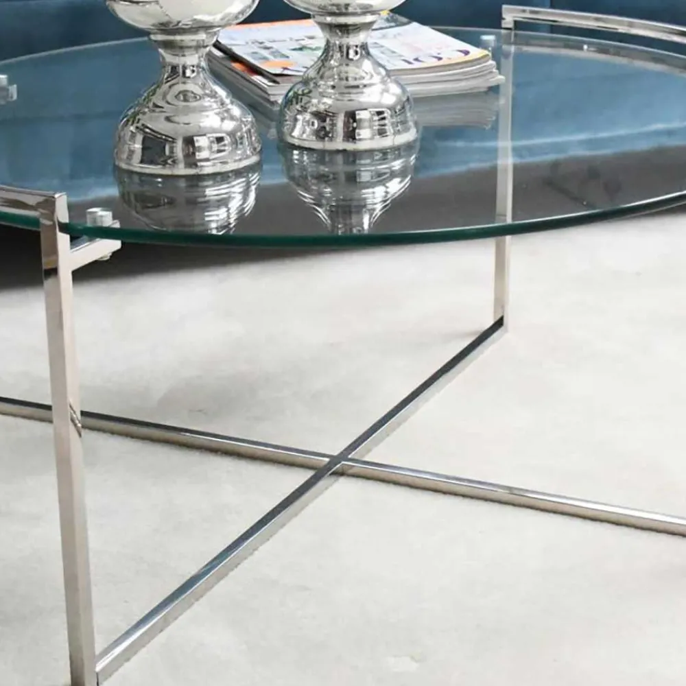 - Eleganter Couchtisch in Chromfarben und Transparent