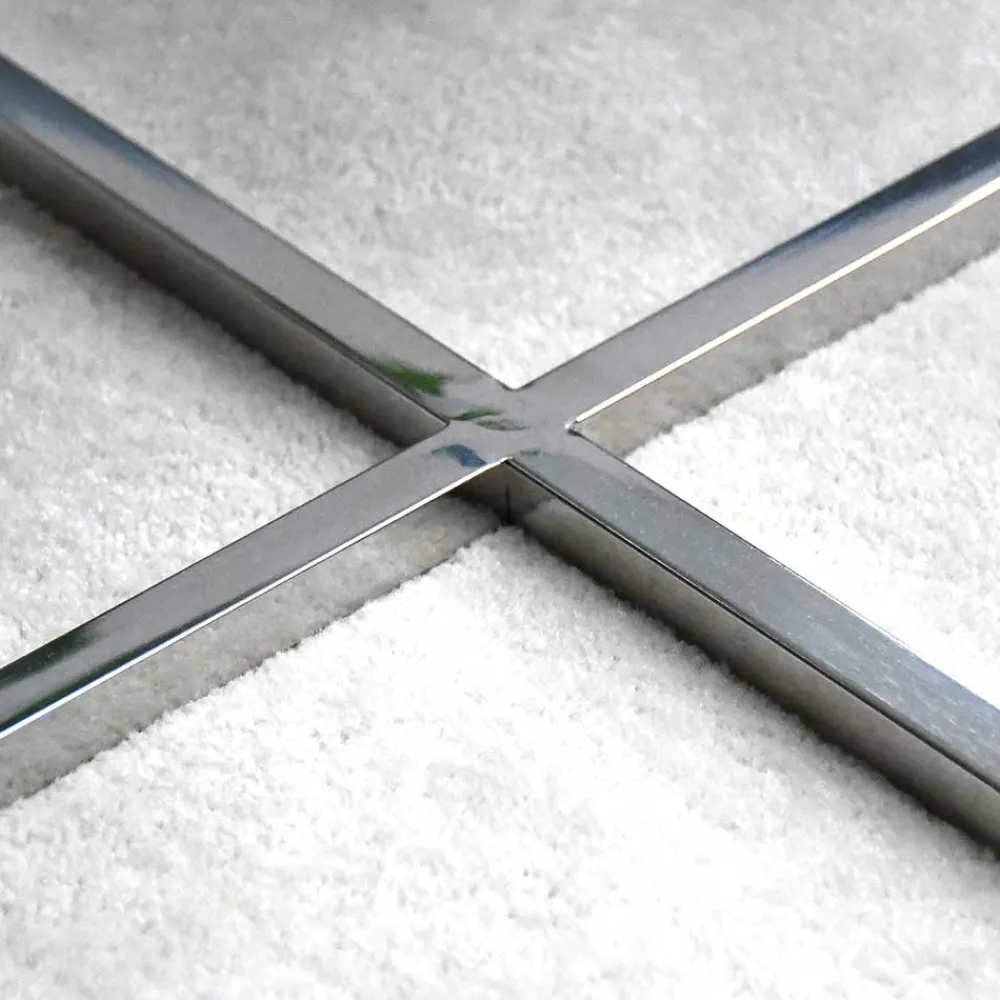 - Das über Kreuz geführte Bügelgestell steht über die Glasplatte und sorgt so für eine Begrenzung